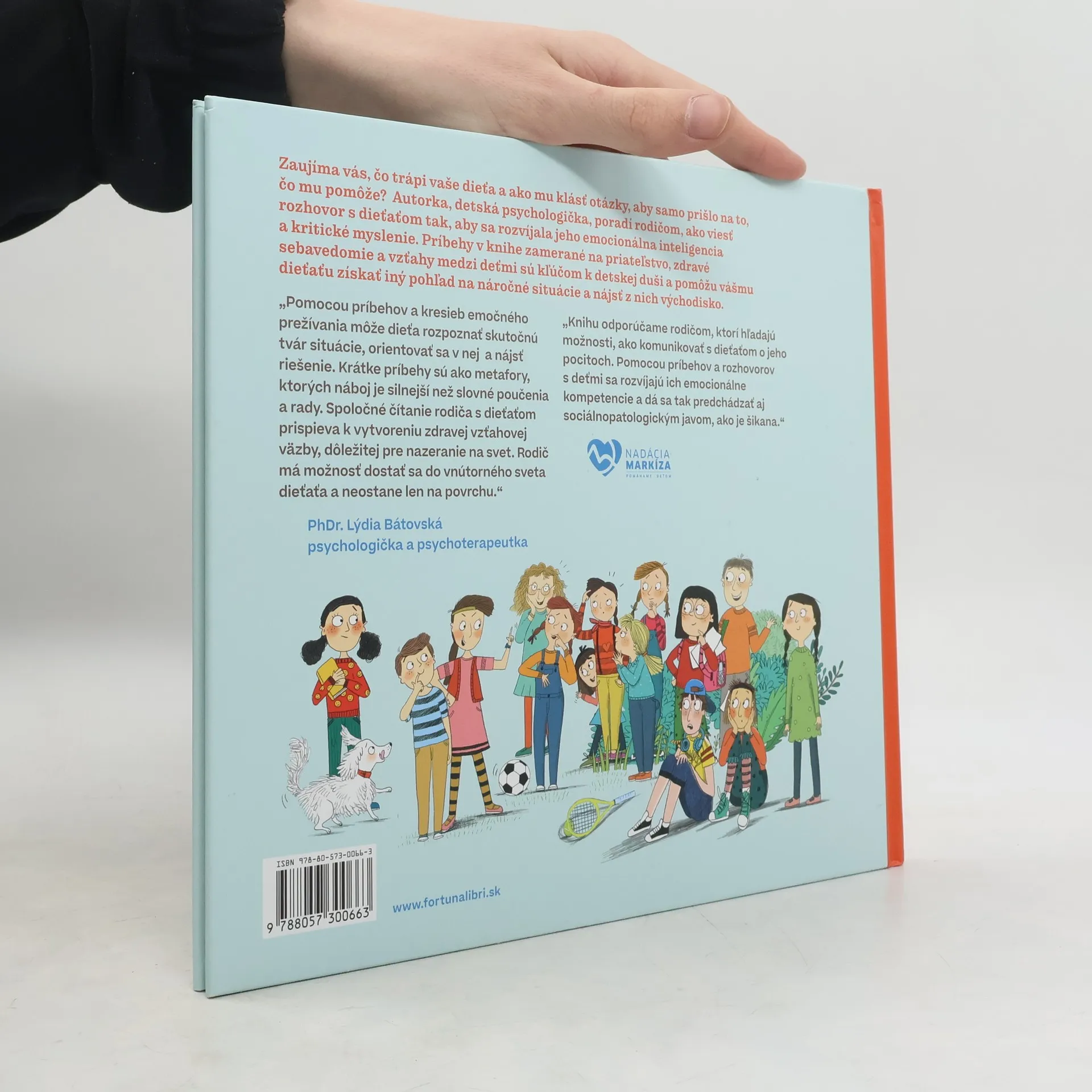 Autorka poradí rodičom, ako viesť s dieťaťom rozhovor tak, aby sa rozvíjala jeho emocionálna inteligencia a kritické myslenie. Príbehy v knihe zamerané na priateľstvo, zdravé sebavedomie a vzťahy medzi deťmi sú kľúčom do detskej duše a pomôžu vám i vášmu dieťaťu získať iný pohľad na náročné situácie a nájsť z nich východisko.