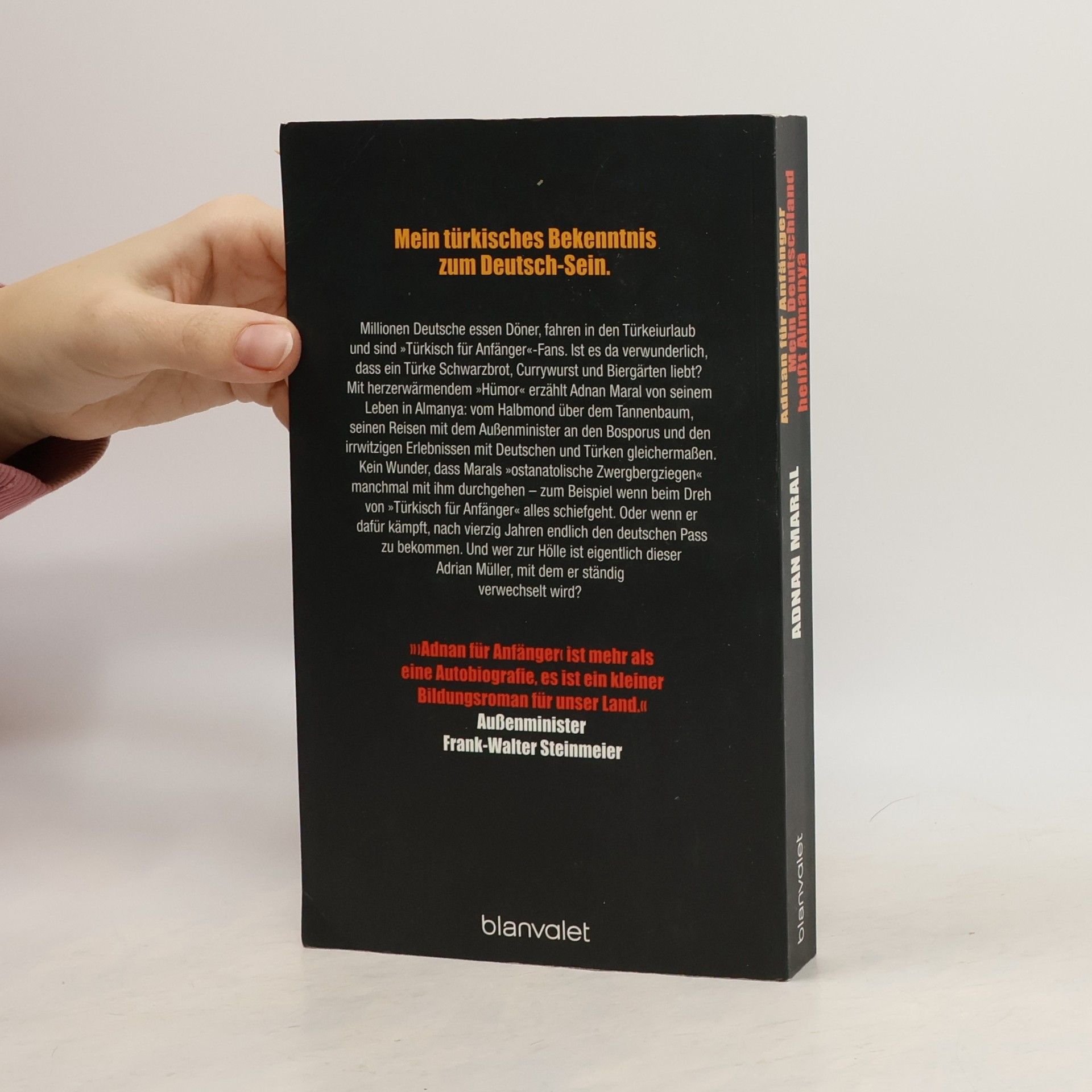 Ein türkisches Bekenntnis zum Deutsch-Sein Integration war gestern! Menschen mit Migrationshintergrund sind längst in der deutschen Gesellschaft angekommen – nur scheinen weder die Deutschen noch die Türken das zu wissen. So lautet die Botschaft in Adnan Marals Buch, in dem er clever, unterhaltsam und pointiert auf vierzig Jahre deutsch-türkische Integration zurückblickt. Der Schauspieler, bekannt aus dem TV- und Kino-Hit „Türkisch für Anfänger”, ist es leid, Quotentürke zu sein – denn er liebt Schwarzbrot, Geranien und Stammtische und ist damit deutscher als viele Deutsche. Doch wie kann es sein, dass er keinen deutschen Pass hat und nicht wählen darf? Damit sich in unseren Köpfen etwas ändert, braucht es laut Maral vor allem Gelassenheit – und eine Prise deutschtürkischen Hümor.