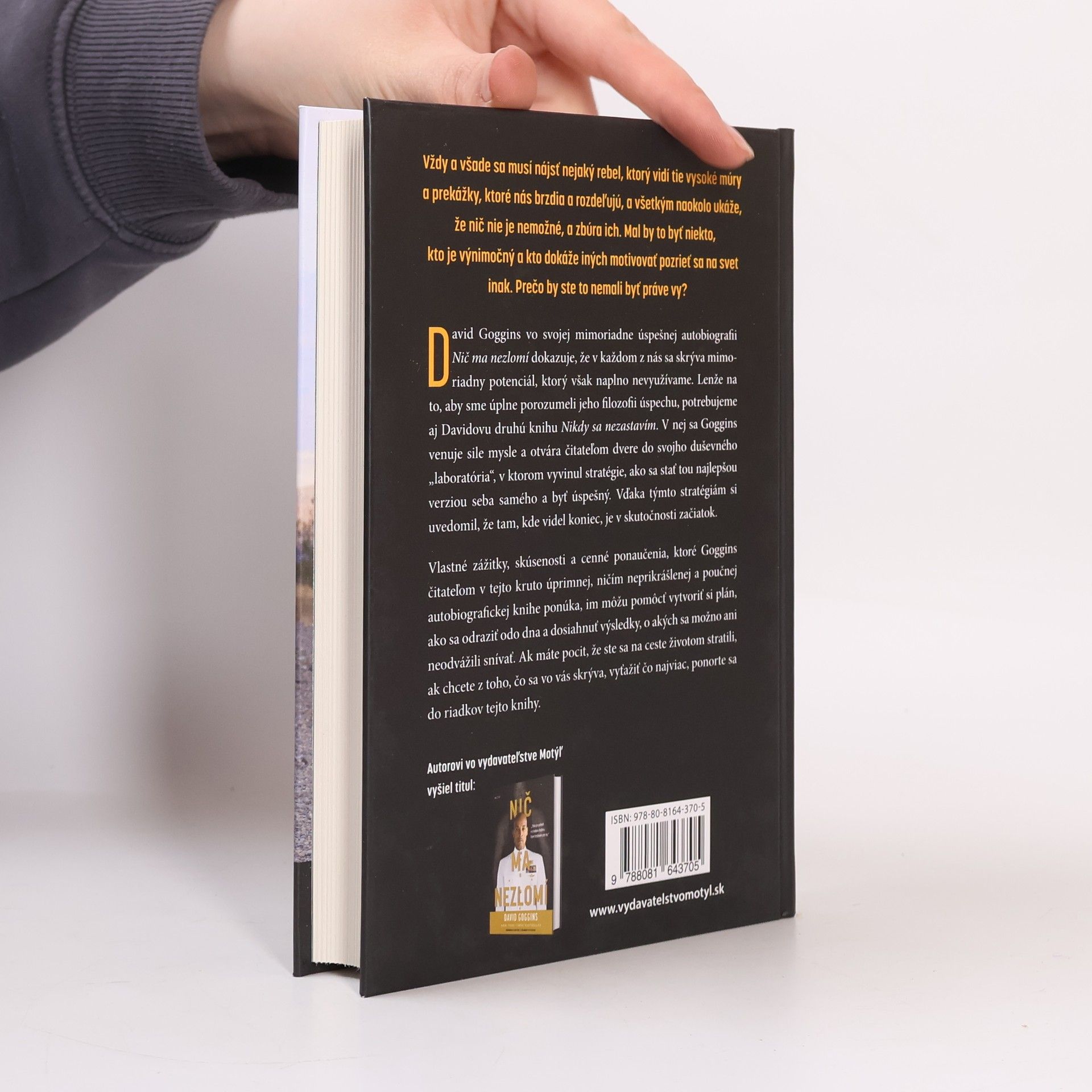 Vždy a všade sa musí nájsť nejaký rebel, ktorý vidí tie vysoké múry a prekážky, ktoré nás brzdia a rozdeľujú, a všetkým naokolo ukáže, že nič nie je nemožné, a zbúra ich. Mal by to byť niekto, kto je výnimočný a kto dokáže iných motivovať pozrieť sa na svet inak. Prečo by ste to nemali byť práve vy? David Goggins vo svojej mimoriadne úspešnej autobiografii Nič ma nezlomí dokazuje, že v každom z nás sa skrýva mimoriadny potenciál, ktorý však naplno nevyužívame. Lenže na to, aby sme úplne porozumeli jeho filozofii úspechu, potrebujeme aj Davidovu druhú knihu Nikdy sa nezastavím. V nej sa Goggins venuje sile mysle a otvára čitateľom dvere do svojho duševného „laboratória“, v ktorom vyvinul stratégie, ako sa stať tou najlepšou verziou seba samého a byť úspešný. Vďaka týmto stratégiám si uvedomil, že tam, kde videl koniec, je v skutočnosti začiatok. Vlastné zážitky, skúsenosti a cenné ponaučenia, ktoré Goggins čitateľom v tejto kruto úprimnej, ničím neprikrášlenej a poučnej autobiografickej knihe ponúka, im môžu pomôcť vytvoriť si plán, ako sa odraziť odo dna a dosiahnuť výsledky, o akých sa možno ani neodvážili snívať. Ak máte pocit, že ste sa na ceste životom stratili, ak chcete z toho, čo sa vo vás skrýva, vyťažiť čo najviac, ponorte sa do riadkov tejto knihy.