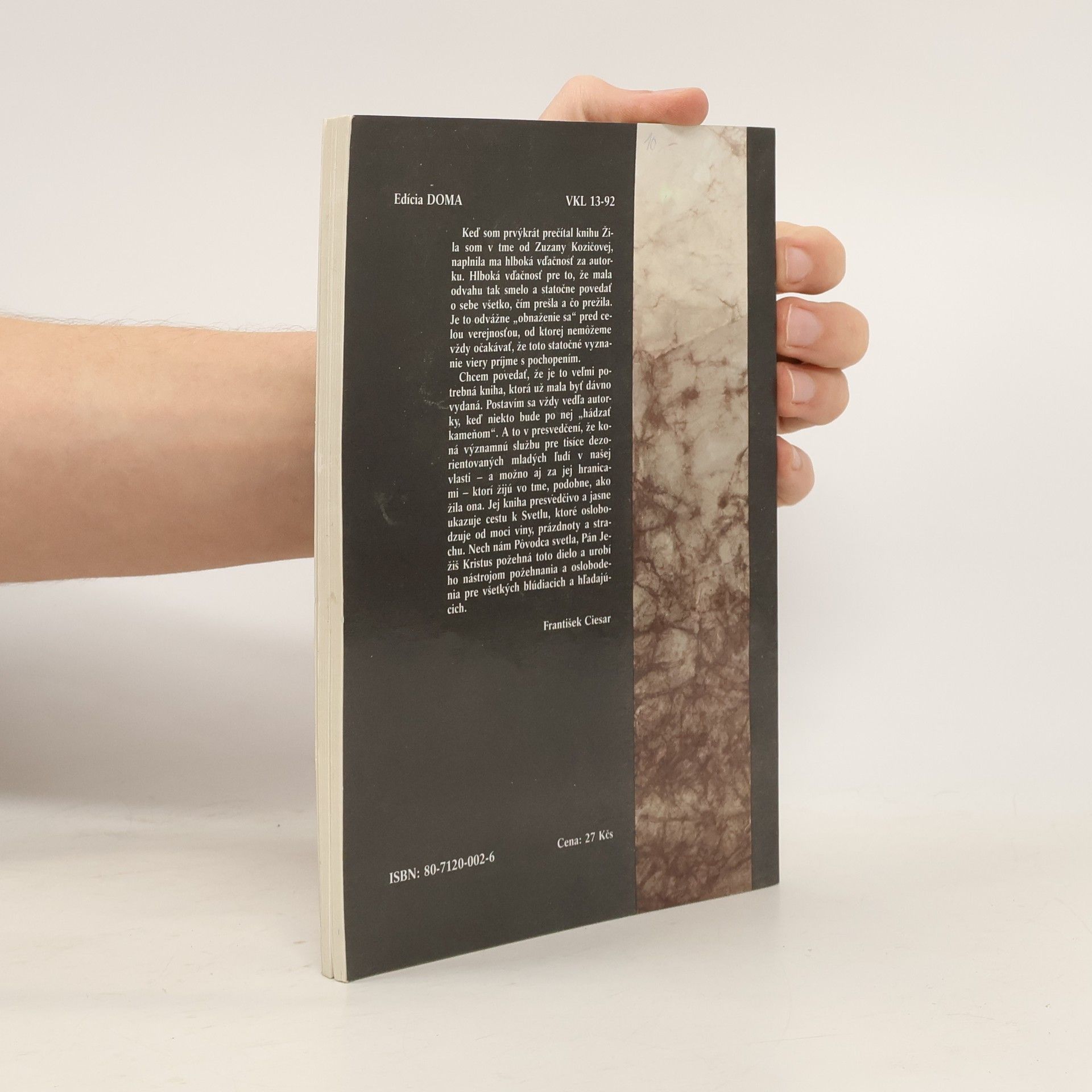Autorka v knihe popisuje všetko, čím prešla a co prežila. Je to odvážne obnaženie sa pred celou verejnosťou. Jedná sa o statočné vyznanie jej viery. Táto kniha presvedčivo a jasne ukazuje cestu k Svetlu, ktoré oslobodzuje od moci viny, prázdnoty a strachu.