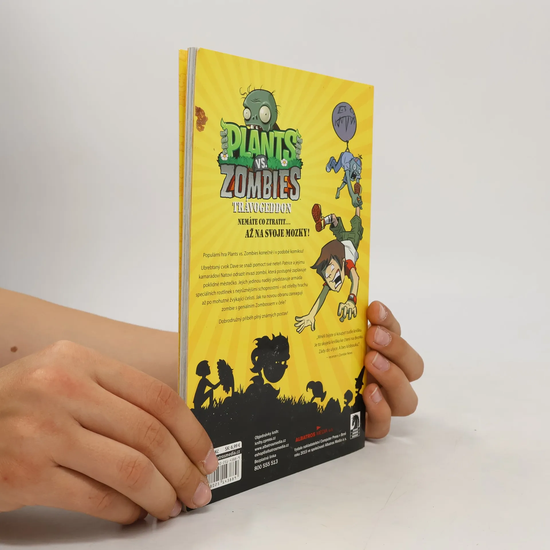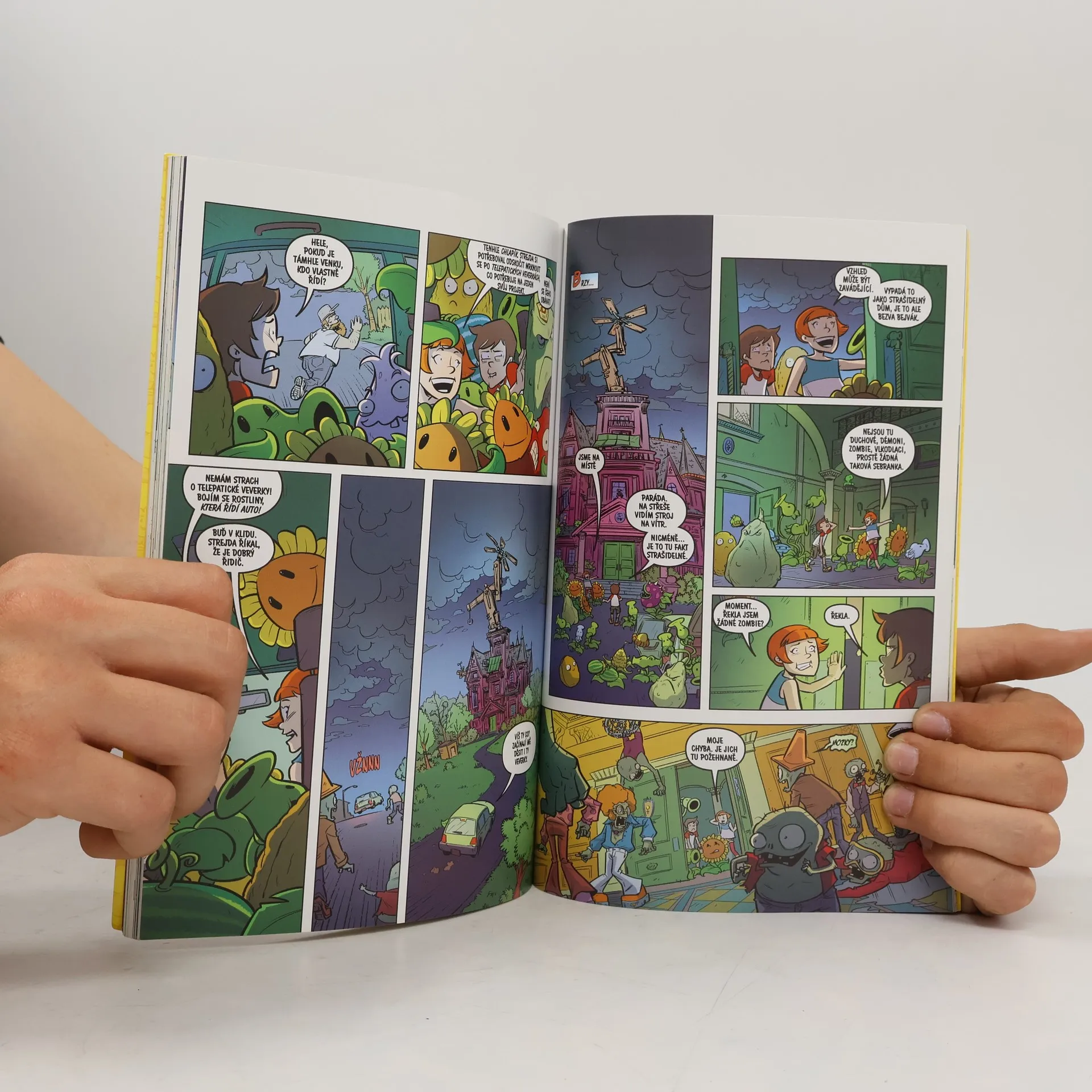 Populární hra Plants vs. Zombies konečně i v podobě komiksu! Ubrebtaný cvok Dave se snaží pomoct své neteři Patrice a jejímu kamarádovi Natovi odrazit invazi zombií, která postupně zaplavuje poklidné městečko. Jejich jedinou naději představuje armáda speciálních rostlinek s nejrůznějšími schopnostmi – od střelby hrachu až po mohutné žvýkající čelisti. Jak na novou obranu zareagují zombie s geniálním Zombossem v čele? Dobrodružný příběh plný známých postav!