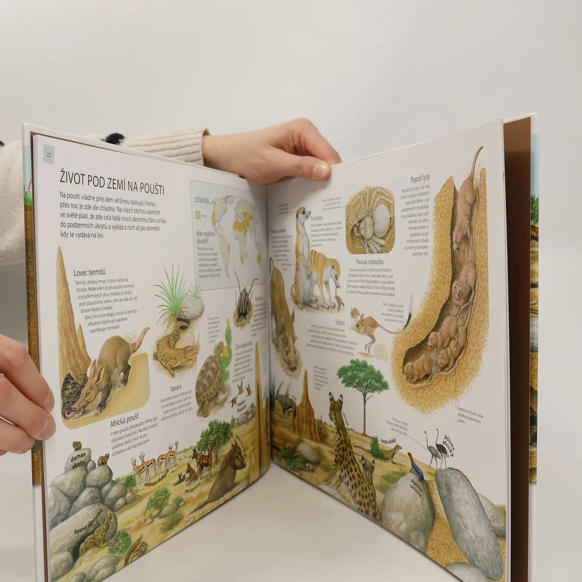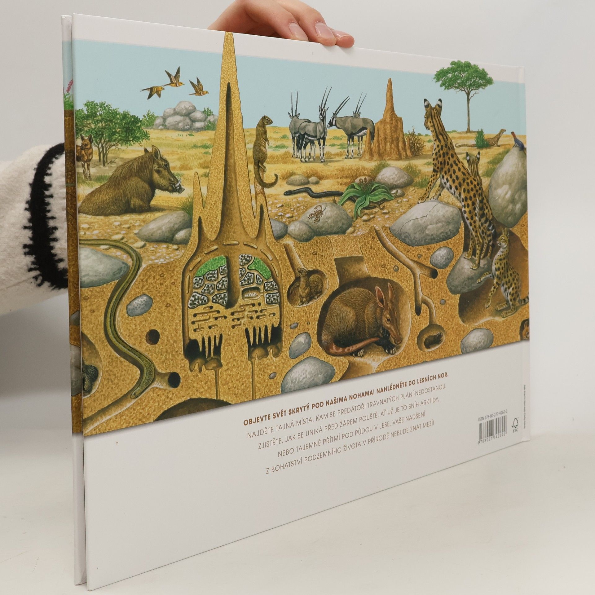 Tato kniha děti formou přehledných vyobrazení doprovodí nejrůznějšími oblastmi prostředí živých tvorů, na která se jinak nedostanou – tyto domečky se totiž nacházejí pod zemí. Živočichy se to tu jen hemží a kniha je výbornou ukázkou toho, jak je život na Zemi vzájemně propojený a jak se mu daří na více místech, než by se zdálo. Malí čtenáři ve věku 7–11 let zde uvidí, co se děje pod jejich nohama a jak neuvěřitelně rozmanitý je život na naší planetě. Poznají ty nejúžasnější podzemní biotopy světa, od vyhřátých arktických brlohů až po písečné nory v pouštích, i nejrůznější společenství druhů, jimž je domovem či úkrytem půda planety Země, ať už je bohatá na živiny nebo zmrzlá na kámen. Zjistí, jaké jsou ohromující možnosti přizpůsobení organismů na své prostředí, jejich vzájemné ovlivňování mezi sebou i to, jak působí na své okolí. Kniha nabízí poznání milovníkům přírody i z řad těch, kdo se čtení spíše vyhýbají. Každé z podrobně vyvedených panoramat je vyobrazením jeviště rušného života pod zemí. Živočichové v hlavních rolích jsou pak přehledně uvedeni na okrajích stránek. Ilustrace také obsahují propracované detaily umožňující snadné pozorování jednotlivých stanovišť. Tohoto ideálního průvodce světem života pod zemí rozhodně stojí za to mít v knihovničce.
