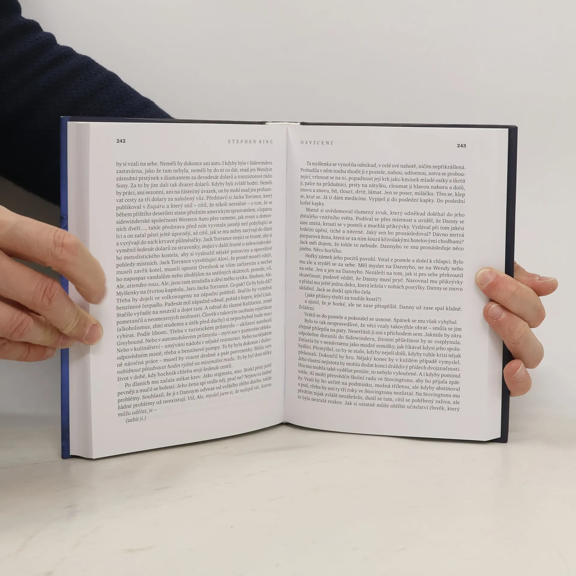 3. vydání Hotel Overlook je považován za nejkrásněji položené horské letovisko na světě, ale nový zimní správce Jack Torrance, jeho žena Wendy a jejich pětiletý syn Danny v něm spatřovali víc než jeho krásu. Jack viděl v Overlooku příležitost, zoufalý způsob, jak uniknout životní smůle a zoufalství, Wendy zase kýženou samotu, která by mohla být poslední příležitostí k zachování narušené rodiny, a Danny? Danny, požehnaný i prokletý náhlým osvícením, darem předvídavosti, viděl věci, které přesahovaly chápání malého kluka. V prázdných pokojích Overlooku na něj číhalo skryté zlo...