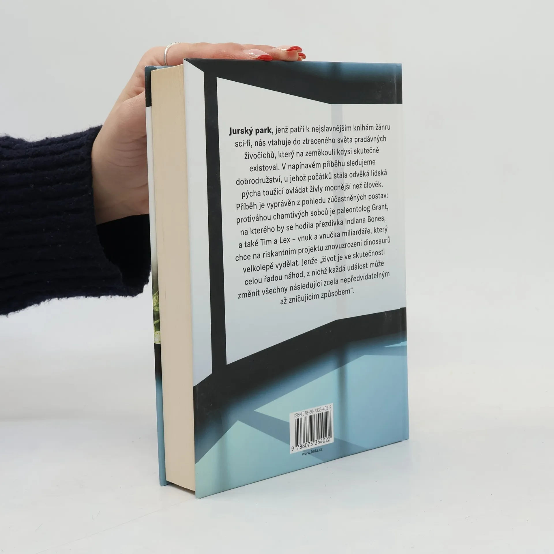 Jurský park, jenž patří k nejslavnějším knihám žánru sci-fi, nás vtahuje do ztraceného světa pradávných živočichů, který na zeměkouli kdysi skutečně existoval. V napínavém příběhu sledujeme dobrodružství, u jehož počátků stála odvěká lidská pýcha toužící ovládat živly mocnější než člověk. Příběh je vyprávěn z pohledu zúčastněných postav: protiváhou chamtivých sobců je paleontolog Grant, na kterého by se hodila přezdívka Indiana Bones, a také Tim a Lex – vnuk a vnučka miliardáře, který chce na riskantním projektu znovuzrození dinosaurů velkolepě vydělat. Jenže „život je ve skutečnosti celou řadou náhod, z nichž každá událost může změnit všechny následující zcela nepředvídatelným až zničujícím způsobem“. „Mláďata skotačila a honila se mezi shovívavými a ospalými dospělými… Byla to roztomilá malá zvířátka. Jenže dospělý velociraptor byl něco úplně jiného. Představoval nejdravějšího dinosaura, který kdy žil. Ačkoli byl poměrně drobný – vážil kolem sta kilo a velký byl přibližně jako leopard – byl rychlý, inteligentní a útočný. Napadal oběti ostrými zuby, silnými předními končetinami s drápy a strašlivým osamoceným drápem na zadní noze.“