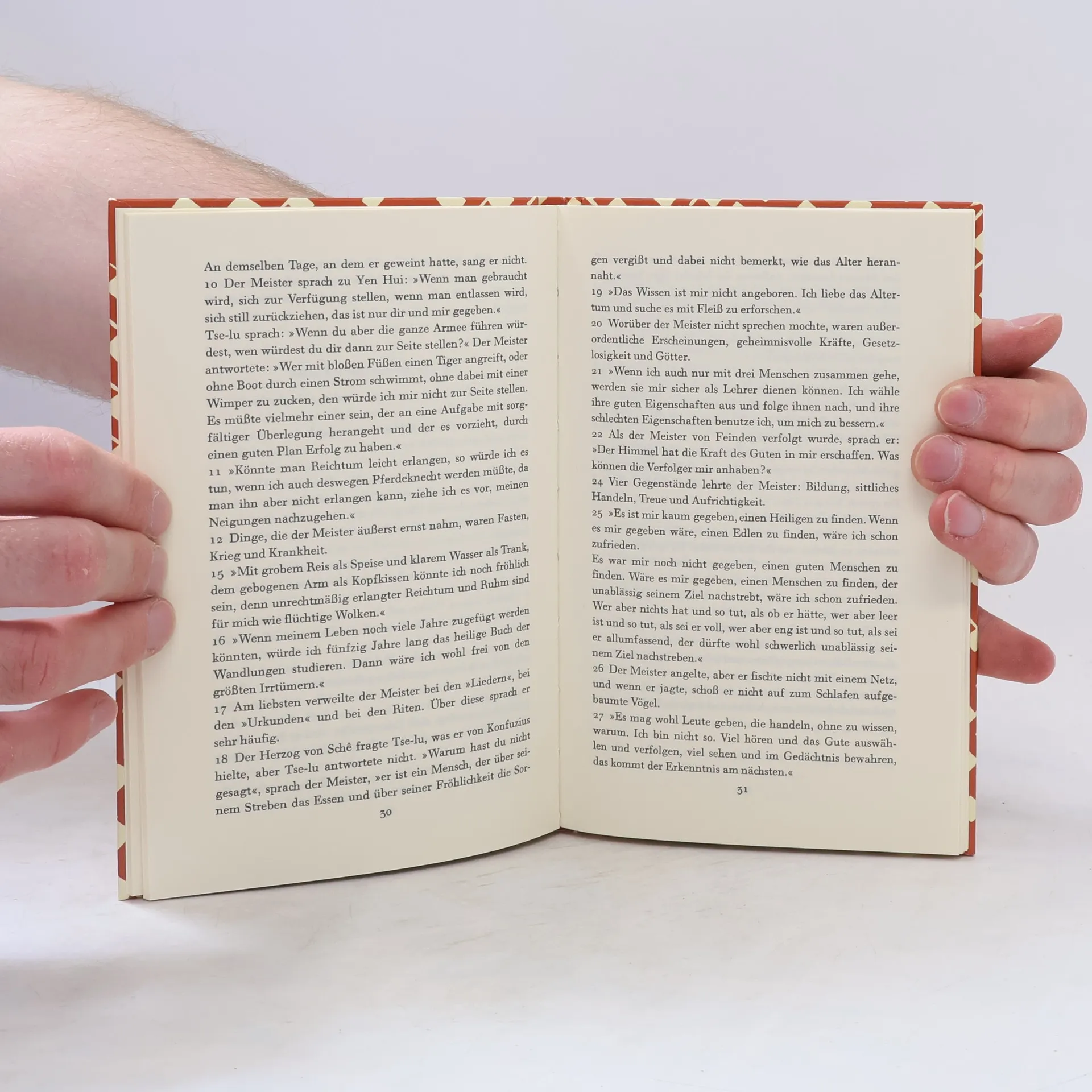 über zweieinhalb Jahrtausende sind vergangen, seit Konfuzius (551–479 v. Chr.) lebte und wirkte, dennoch sind seine Gedanken auch heute noch lebendig und überraschen durch ihre Wirklichkeitsnähe und Lebensklugheit. Das philosophische Interesse des Konfuzius gilt den menschlichen und sozialen Beziehungen – seine Lehre kennt keine Fragen der Metaphysik, es ist eine ganz diesseitige Lebensweisheit, in deren Zentrum die Bildbarkeit des Menschen, seine Fähigkeit zur Harmonie und Kritik stehen. Erst das Wissen und die Lernfähigkeit machen den Menschen zu einem vollkommenen und freien, der sich nicht »als Werkzeug mißbrauchen läßt«.