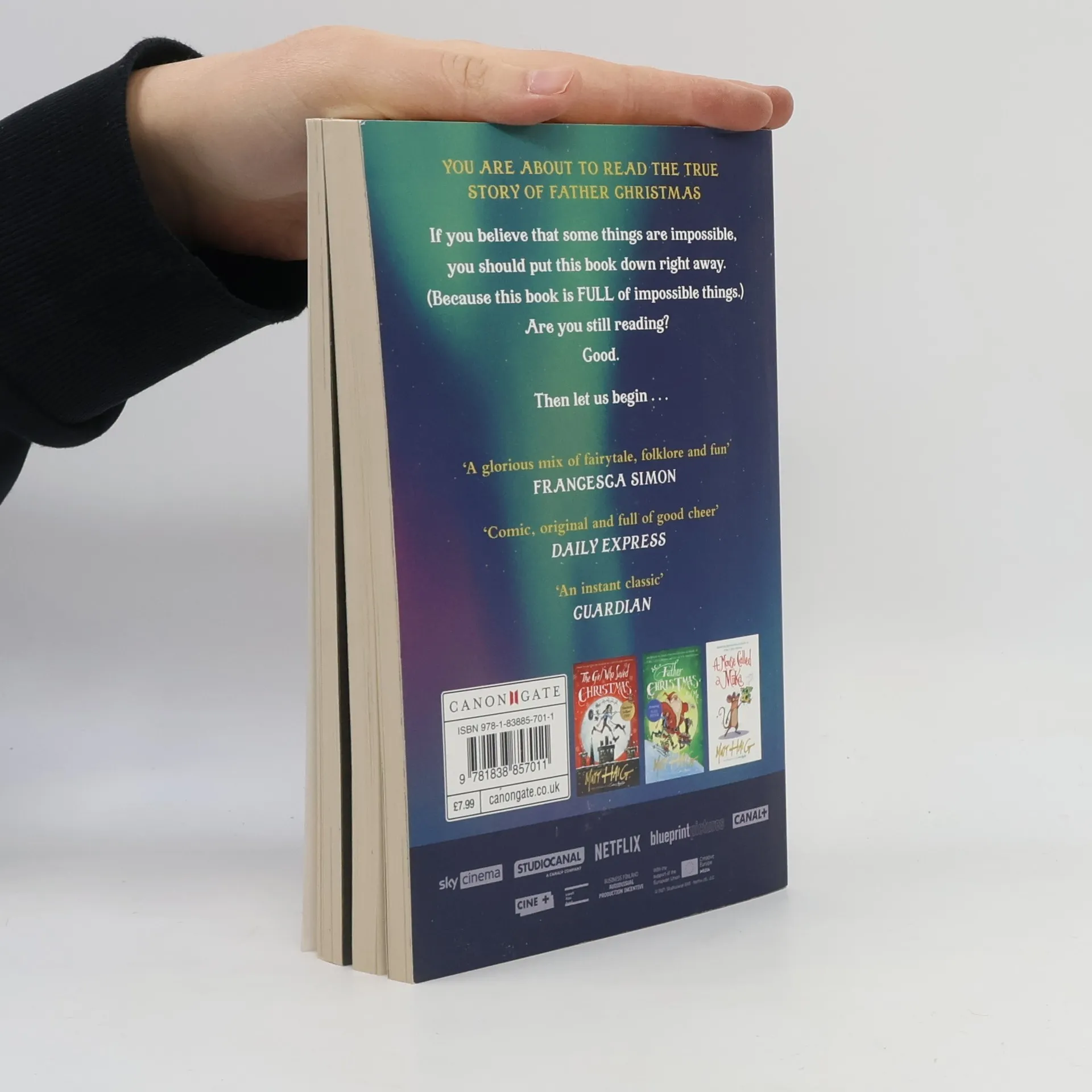 BELIEVE IN THE IMPOSSIBLE You are about to read THE TRUE STORY OF FATHER CHRISTMAS If you are one of those people who believe that some things are impossible, you should put this book down right away. (Because this book is FULL of impossible things.) Are you still reading? Good. Then let us begin..