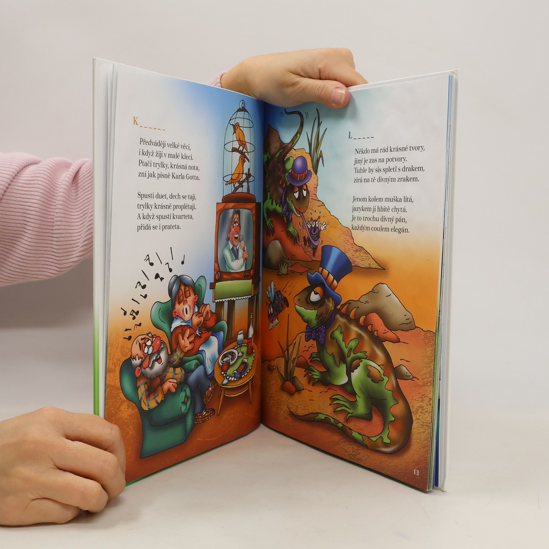 Veselé básničky na doma, do školy i školky. Hravé verše o zvířátkách, které děti potkávají na dvorku, v přírodě a v Zoo. Každá básnička je zároveň i hádankou, ve které děti hádají jméno zvířátka v názvu.
