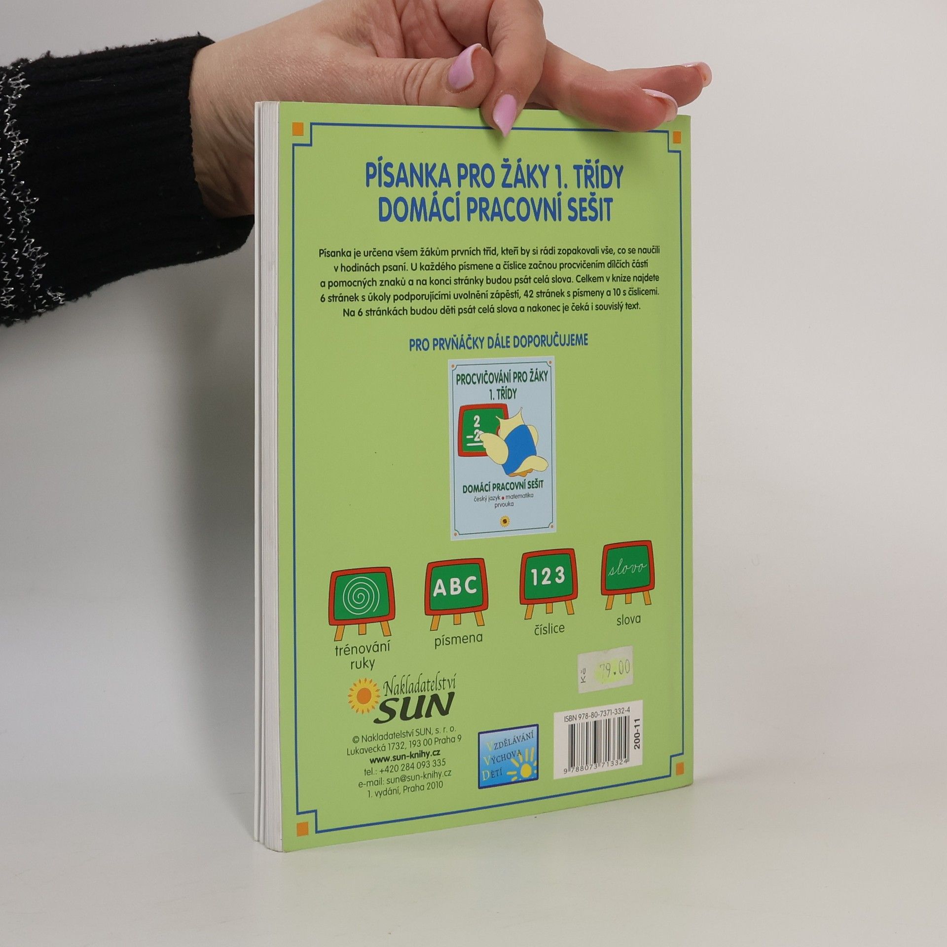 Písanka je určena všem žákům prvních tříd, kteří by si rádi zopakovali vše, co se naučili v hodinách psaní. U každého písmene a číslice začnou procvičením dílčích částí a pomocných znaků a na konci stránky budou psát celá slova.