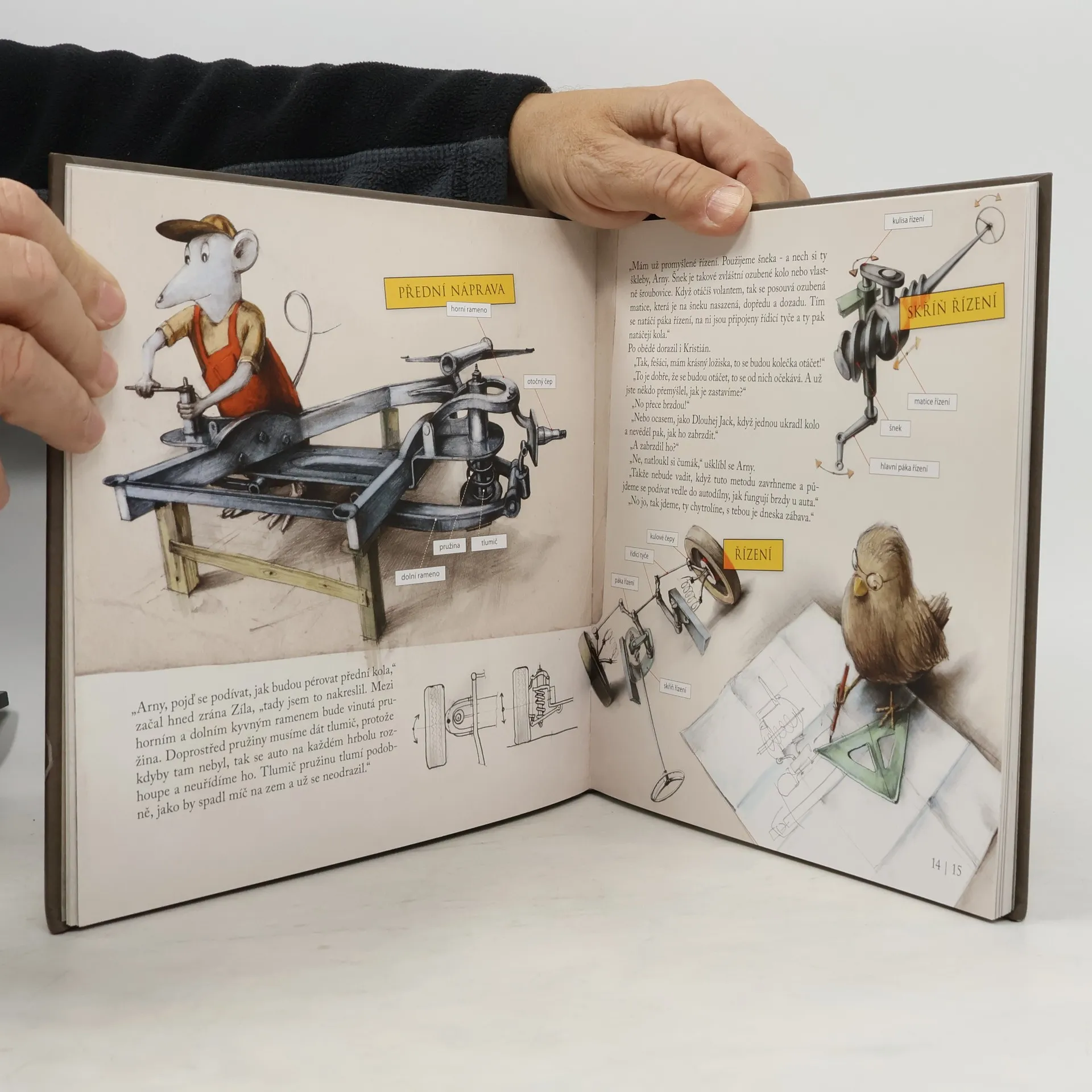 Dva kamarádi, krysák Arny a vrabčák Zíla, se rozhodnou, že si postaví auto. Získají důležitého spojence, žabáka Kristiána, který má možnost obstarat vše potřebné a práce může zvesela začít. Naši hrdinové nejsou žádní svatouškové a nepatří ani mezi hvězdy zvířecí říše. Bydlí na okraji města mezi starými ohradami, autodílnou a velkou skládkou. V tomto světě jim bystrá hlava a ostrý jazyk rozhodně nejsou na škodu. Během příběhu, kde Arny s kamarády musí při stavbě auta překonávat tisíce nečekaných překážek, se čtenář dozví, jak je sestrojen a jak funguje automobil. Z knihy je možné pochopit princip motoru, spojky, brzd, rozdělovače a mnoho dalších věcí.