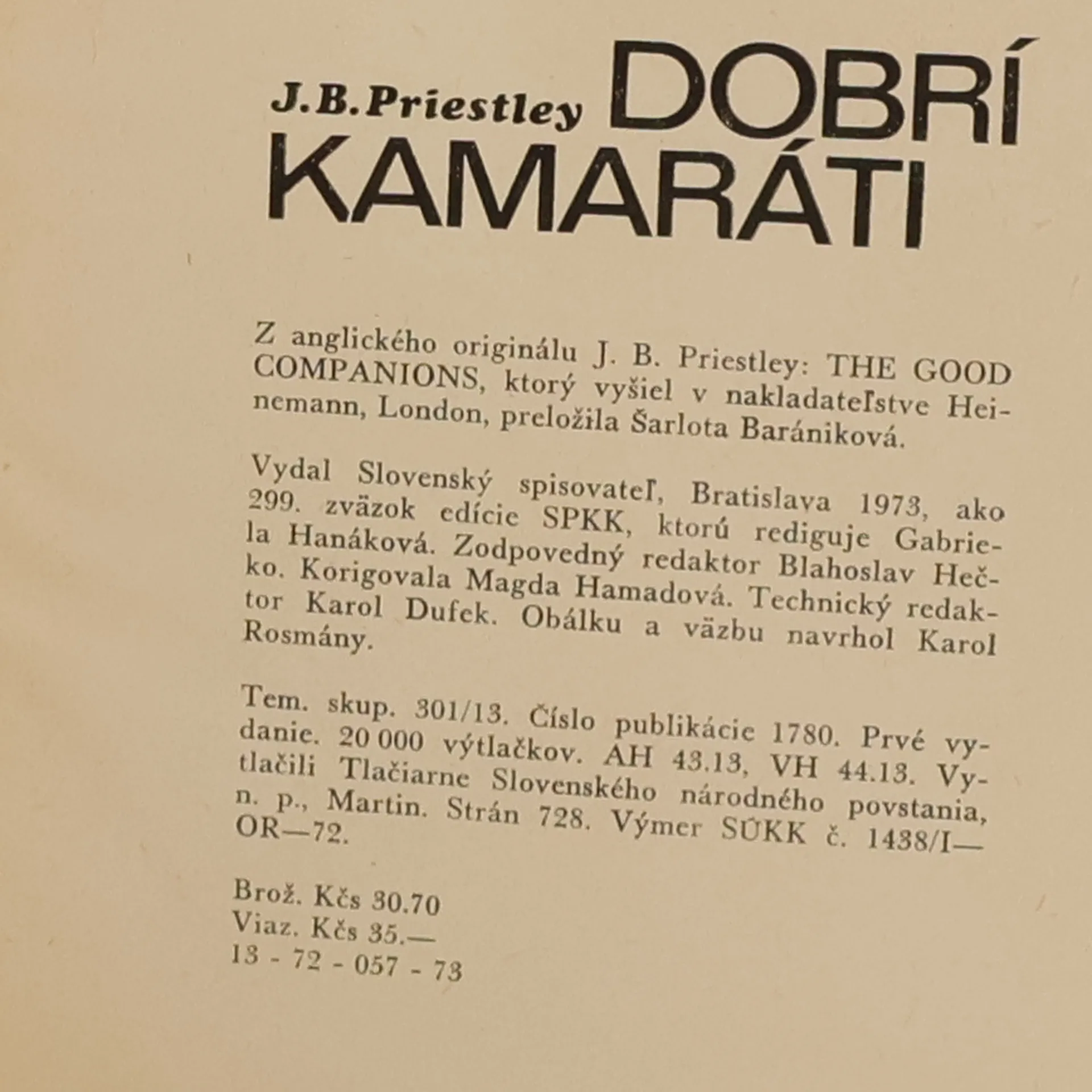 Dobrí kamaráti, John Boynton Priestley