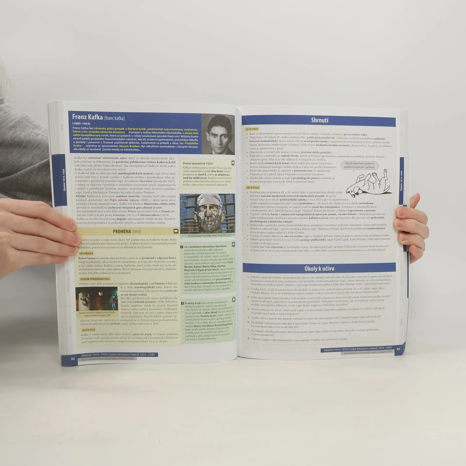 Učebnice obsahuje výklad k literatuře od roku 1914 po současnost. V chronologickém sledu seznamuje žáky s vývojem světové a české literatury, a to ve třech celcích (Období 1914–1939, Období 1939–1989 a Období po roce 1989), z nichž každý je tvořen dvěma či třemi kapitolami.