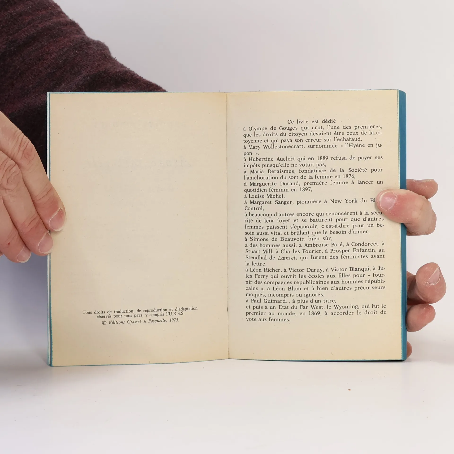 A toutes celles qui vivent dans l'illusion que l'égalité est acquise et que l'Histoire ne revient pas en arrière, je voudrais dire que rien n'est plus précaire que les droits des femmes.A celles qui ne regardent ni derrière elles ni autour, je voudrais rappeler que les Allemandes de l'Est par exemple ont perdu, à la chute du mur de Berlin, des droits qu'elles croyaient acquis pour toujours. Que les Algériennes, les Iraniennes, les Afghanes et tant d'autres, qui avaient goûté aux premiers fruits de la liberté, ont disparu, du jour au lendemain, sous un voile de silence. Aux Française je rappelle que l'on déplore encore 220 000 avortements en 1999.A celles enfin qui font confiance aux hommes au pouvoir pour que les choses s'arrangent peu à peu, je voudrais citer une phrase de Virginia Woolf : "L'histoire de la résistance des hommes à l'émancipation des femmes." Si elles ne défendent pas elles-mêmes les droits conquis par leurs mères, personne ne le fera pour elles.La condition des femmes ne va pas en s'améliorant dans le monde, contrairement à ce qu'il est reposant de croire. Les hommes sont des analphabètes du féminisme, on le sait. Mais les femmes le sont à peine moins.C'est pourquoi il n'est jamais trop tard pour lire un livre féministe. Ni trop tôt. Ils n'ont hélas pas pris une ride depuis 25 ans.