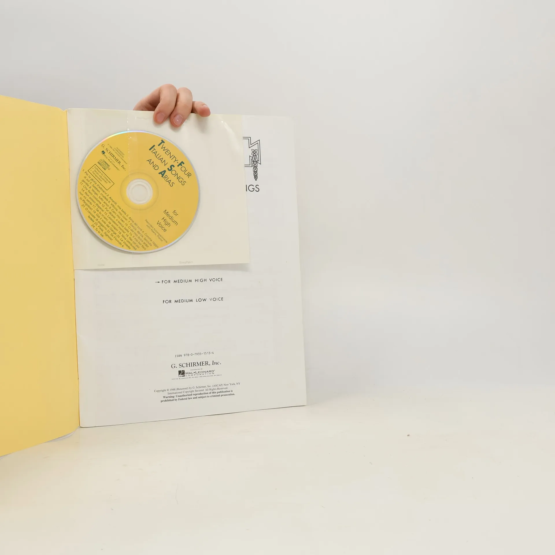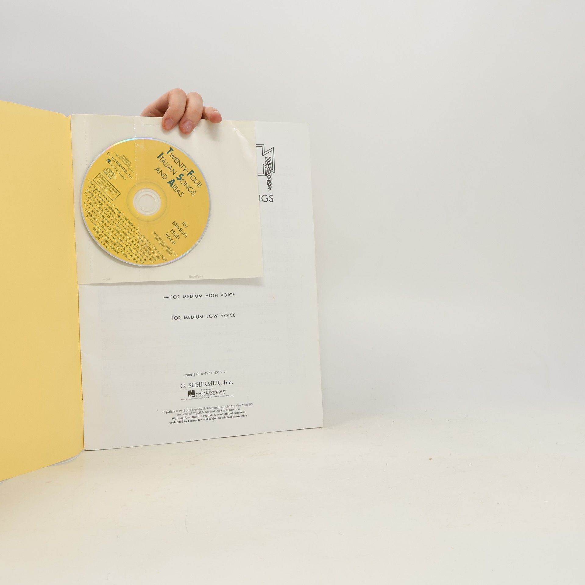 (Vocal Collection). For well over a century, the G. Schirmer edition of 24 Italian Songs & Arias of the 17th and 18th Centuries has introduced millions of beginning singers to serious Italian vocal literature. Offered in two accessible keys suitable for all singers, it is likely to be the first publication a voice teacher will ask a first-time student to purchase. The classic Parisotti realizations result in rich, satisfying accompaniments which allow singers pure musical enjoyment. For ease of practice, carefully prepared accompaniments are also recorded on CD by John Keene, a New York-based concert accompanist and vocal coach who has performed throughout the United States for radio and television. Educated at the University of Southern California, Keene has taught accompanying at the university level and collaborated with Gian Carlo Menotti and Thea Musgrave on productions of their operas.