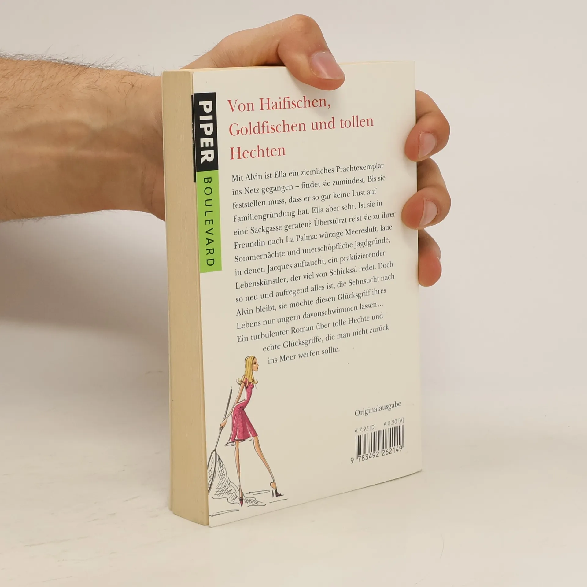 Mit Alvin ist Ella ein ziemliches Prachtexemplar ins Netz gegangen – findet sie zumindest. Bis sie feststellen muss, dass er so gar keine Lust auf Familiengründung hat. Ella aber sehr. Ist sie in eine Sackgasse geraten? Überstürzt reist sie zu ihrer Freundin nach La Palma: würzige Meeresluft, laue Sommernächte und unerschöpfliche Jagdgründe, in denen Natan auftaucht, ein praktizierender Lebenskünstler, der es ernst zu meinen scheint. Doch so neu und aufregend alles ist, die Sehnsucht nach Alvin bleibt, sie möchte diesen Glücksgriff ihres Lebens nur ungern davonschwimmen lassen... Ein turbulenter Roman über tolle Hechte und echte Glücksgriffe, die man nicht zurück ins Meer werfen sollte.