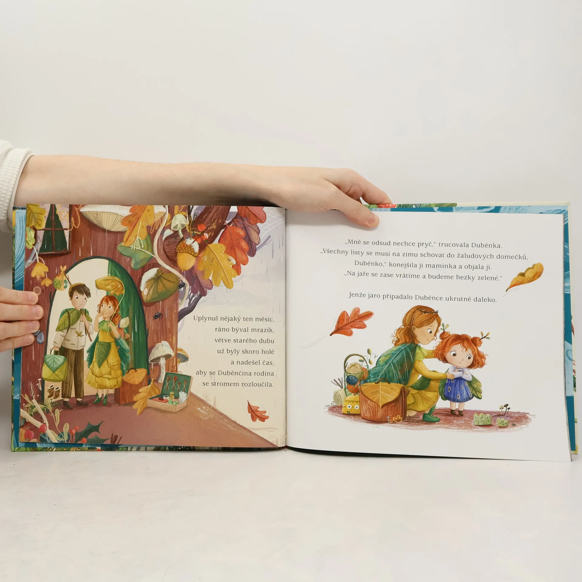 V koruně vysokého stromu žije stromová víla jménem Duběnka. Nejraději by celé dny jen dováděla, tancovala a pořádala čajové dýchánky se zvířecími kamarády. Ale jak se začíná měnit roční období a do vzduchu se vkrádá chlad, vše kolem se ukládá k zimnímu spánku. Duběnčina rodina se chystá na každoroční stěhování, malá víla se však odmítá hnout a tvrdohlavě se drží své milované větve. Bojí se tam dolů na zem, do neznáma. Opravdu doma jsme však většinou právě tam, kde jsou naši nejbližší...