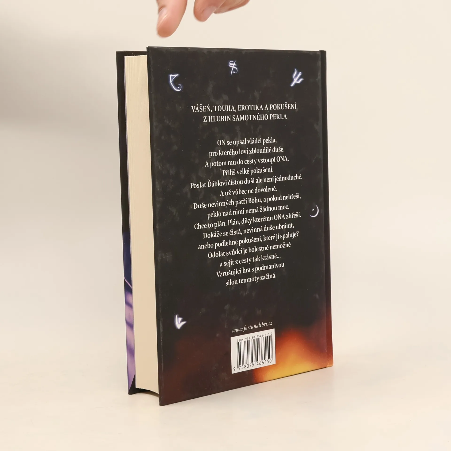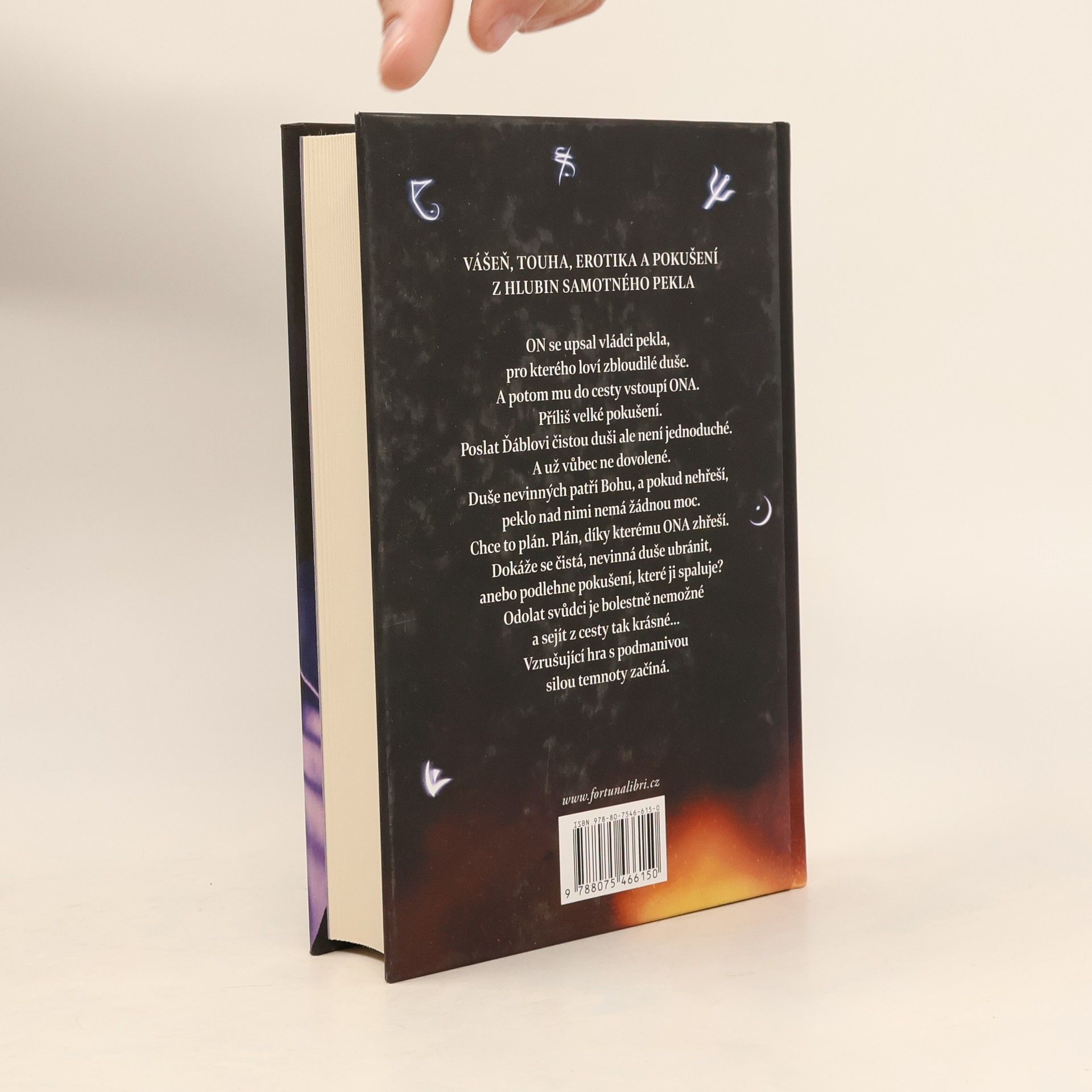 VÁŠEŇ, TOUHA, EROTIKA A POKUŠENÍ Z HLUBIN SAMOTNÉHO PEKLA... ON se upsal vládci pekla, pro kterého loví zbloudilé duše. A potom mu do cesty vstoupí ONA. Příliš velké pokušení. Poslat Ďáblovi čistou duši ale není jednoduché. A už vůbec ne dovolené. Duše nevinných patří Bohu a pokud nehřeší, peklo nad nimi nemá žádnou moc. Chce to plán. Plán, díky kterému ONA zhřeší. Dokáže se čistá, nevinná duše ubránit, anebo podlehne pokušení, které ji spaluje? Odolat svůdci je bolestivě nemožné a sejít z cesty tak krásné… Vzrušující hra s podmanivou silou temnoty začíná.