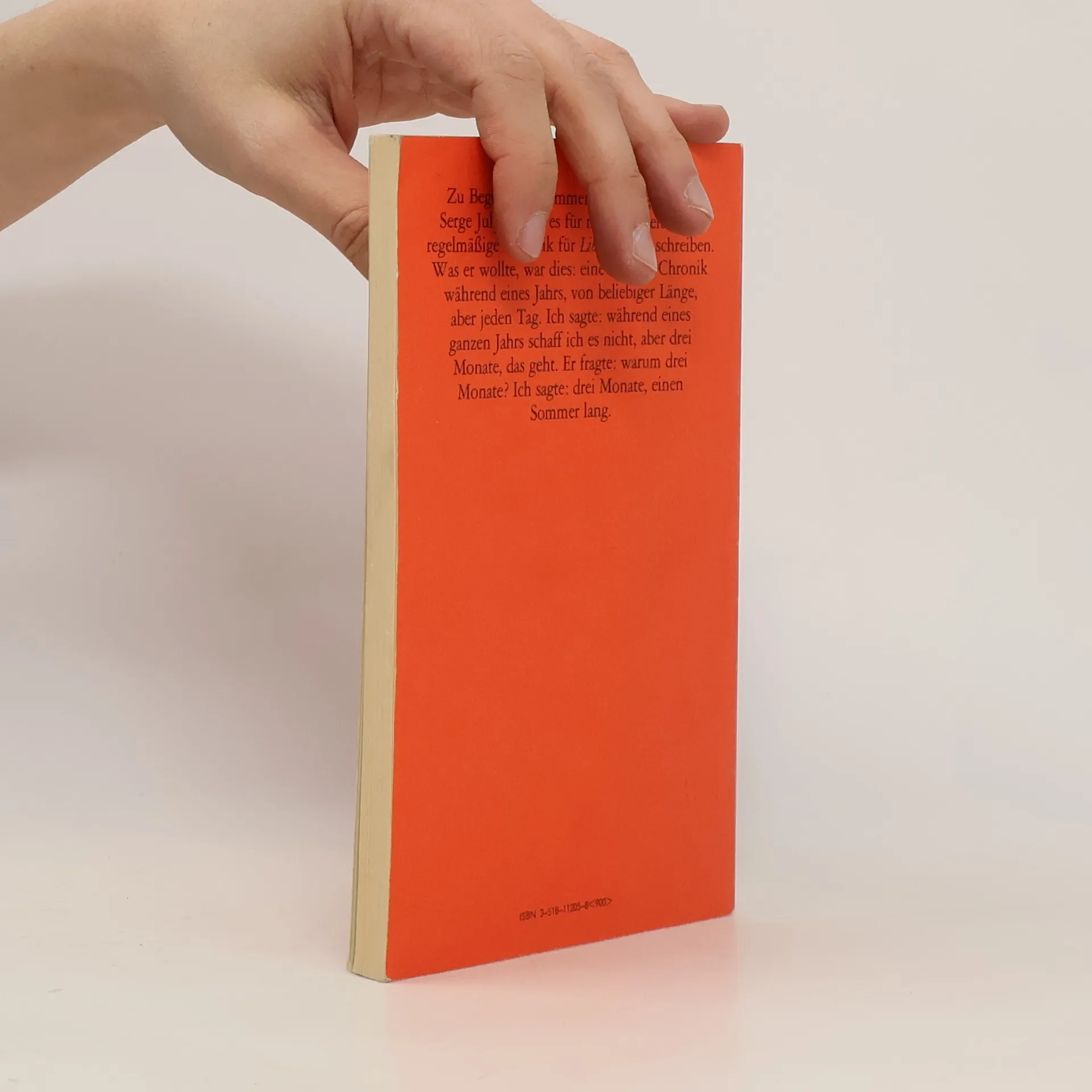 Zu Beginn des Summers 1980 wurde Marguerite Duras von der Pariser Tageszeitung Liberation gefragt, ob sie, während eines Jahres, eine Tageschronik für diese Zeitung schreiben wolle. Was schließlich zustande kam, war eine wöchentliche Chronik während dreier Monate: der Sommermonate des Jahres 1980. Die so entstandenen zehn »Berichte« Hilden den Inhalt des vorliegenden Buches: Marguerite Duras verbringt diesen Sommer in einem kleinen Haus am Atlantik. Die »große Welt« erreicht sie nur durchs Fernsehen, aber das Gesehene und Gehörte treibt sie um, zwingt sie zum Nachdenken, vermischt sich mit ihrem Alltag. Olympische Spiele in Moskau, Afghanistan, Begräbnis des Schahs von Persien in Ägypten, nach dem großen Streik in der Danziger Lenin-Werft.