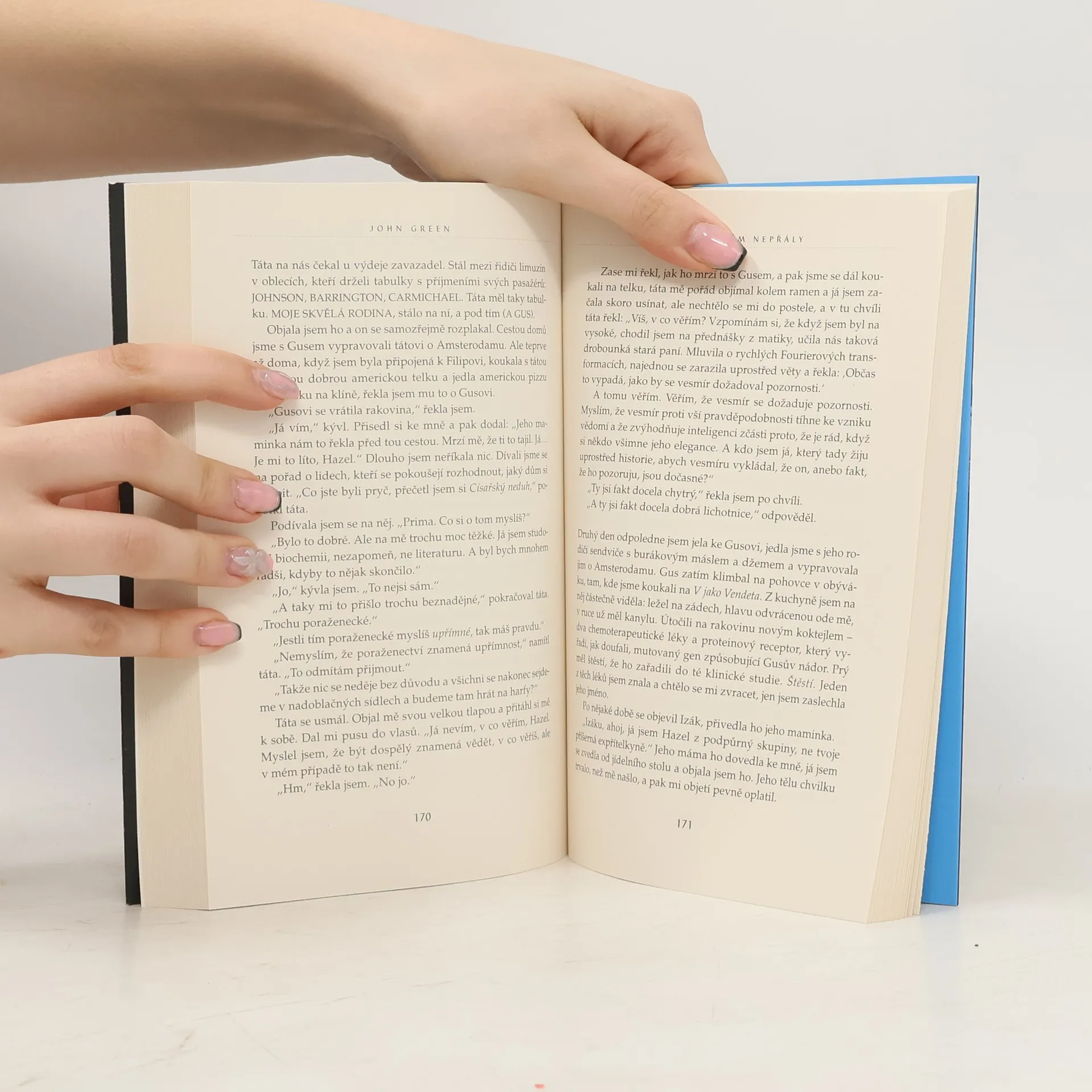 Zajímavá a citlivá knížka o šestnáctileté Hazel, která trpí rakovinou a sblíží se s Augustem, jemuž se podařilo tuto nemoc překonat. Ti dva mladí lidé se výborně doplňují, a navíc je spojuje originální pohled na život i na chorobu, která je postihla. „Nejvtipnější smutný příběh“ je napsán s mimořádným smyslem pro humor i sarkasmus a díky autorovu vyprávěčskému talentu vyznívá velmi působivě.