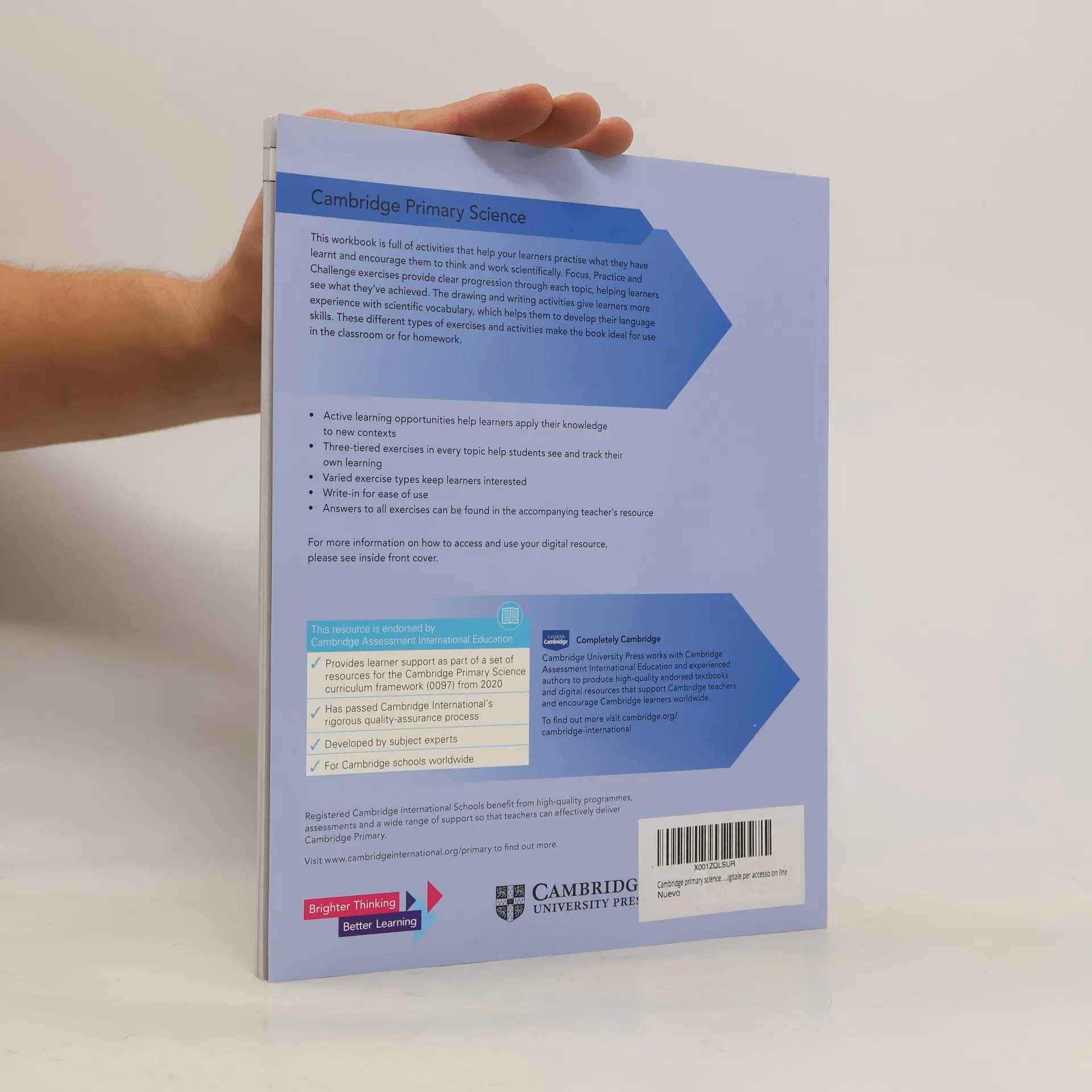 Discover our new resources for the Cambridge International Primary and Lower Secondary Curriculum Frameworks These workbooks are full of activities that help your learners practise what they have learnt and encourage them to think and work scientifically. Focus, Practice and Challenge exercises provide clear progression through each topic, helping learners see what they've achieved. The drawing and writing activities give learners more experience with scientific vocabulary, which helps them to develop their language skills. These different types of exercises and activities make the book ideal for use in the classroom or for homework.