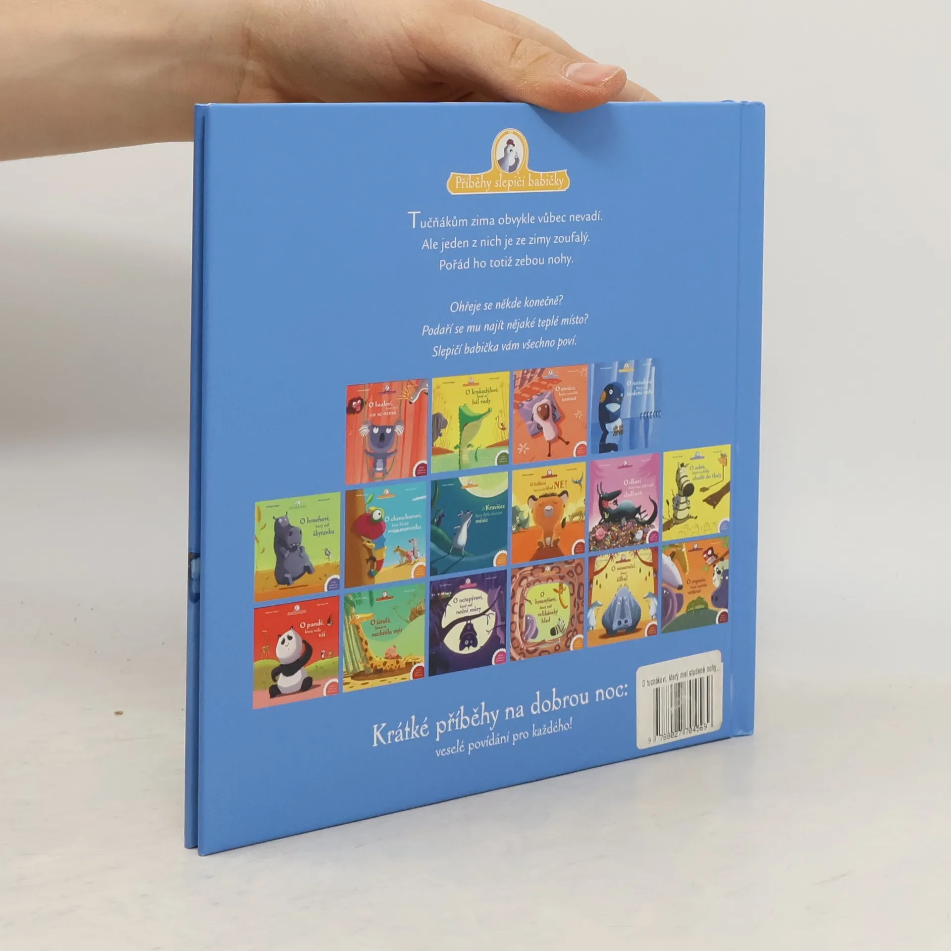Tučňáci mají rádi zimu a vůbec jim nevadí. Ale jeden tučňáček je ze zimy zoufalý, pořád ho totiž zebou nohy. A tak se rozhodne, že půjde hledat místo, kde je teplo. Podaří se mu to? Ohřeje se někde konečně? Slepičí babička vám všechno poví.