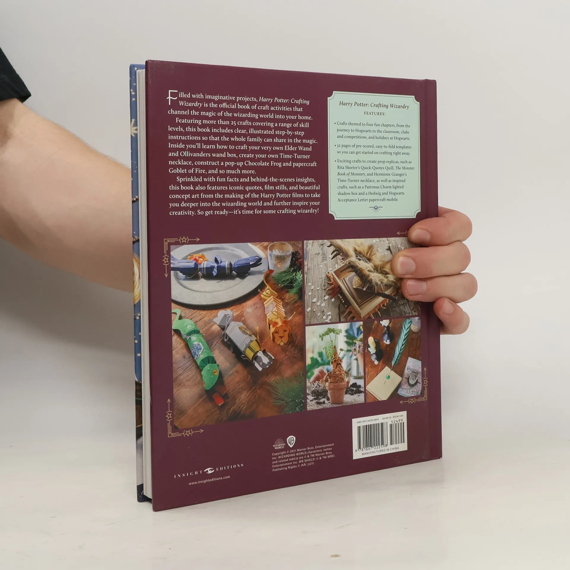 Over 25 official crafting activities inspired by the Harry Potter films.Filled with imaginative projects, this official book of craft activities channels the magic of the Wizarding World into your home.Featuring over 25 crafts covering a range of skill levels, Crafting Wizardry includes clear, step-by-step, illustrated instructions so that the whole family can share in the magic. Inside you’ll learn how to craft your very own wand, decorate your home to showcase your Hogwarts house pride, create your own pop-ups, and so much more.Sprinkled with fun facts and behind-the-scenes insights, this book also features film stills, original concept art, and blueprints from the making of the Harry Potter films to take you deeper into the Wizarding World and further inspire your creativity. So get ready, it’s time for some crafting wizardry!