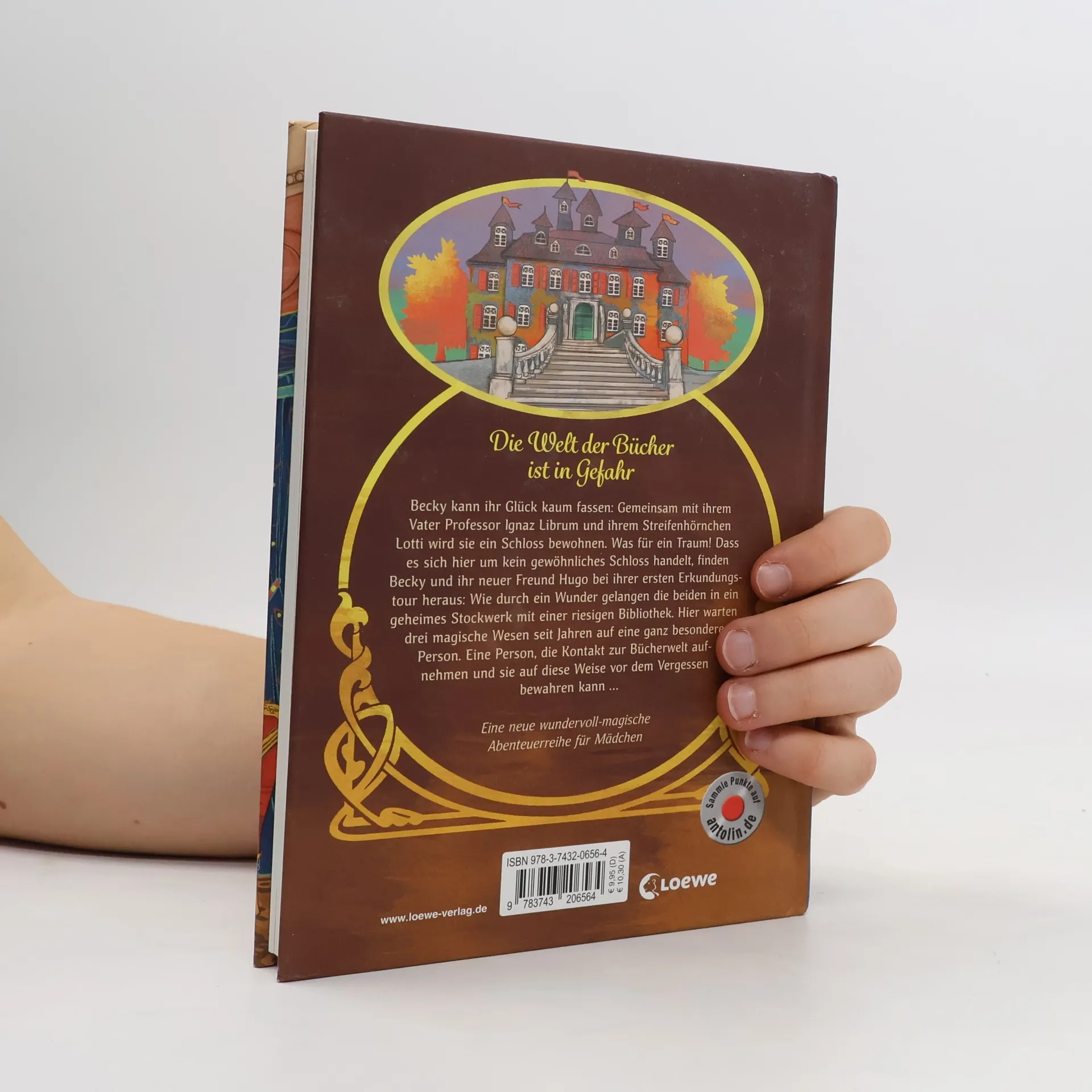 Die Welt der Bücher ist in GefahrBecky kann ihr Glück kaum Gemeinsam mit ihrem Vater Professor Ignaz Librum und ihrem Streifenhörnchen Lotti wird sie ein Schloss bewohnen. Was für ein Traum! Dass es sich hier um kein gewöhnliches Schloss handelt, finden Becky und ihr neuer Freund Hugo bei ihrer ersten Erkundungstour Wie durch ein Wunder gelangen die beiden in ein geheimes Stockwerk mit einer riesigen Bibliothek. Hier warten drei magische Wesen seit Jahren auf eine ganz besondere Person. Eine Person, die Kontakt zur Bücherwelt aufnehmen und sie auf diese Weise vor dem Vergessen bewahren kann …