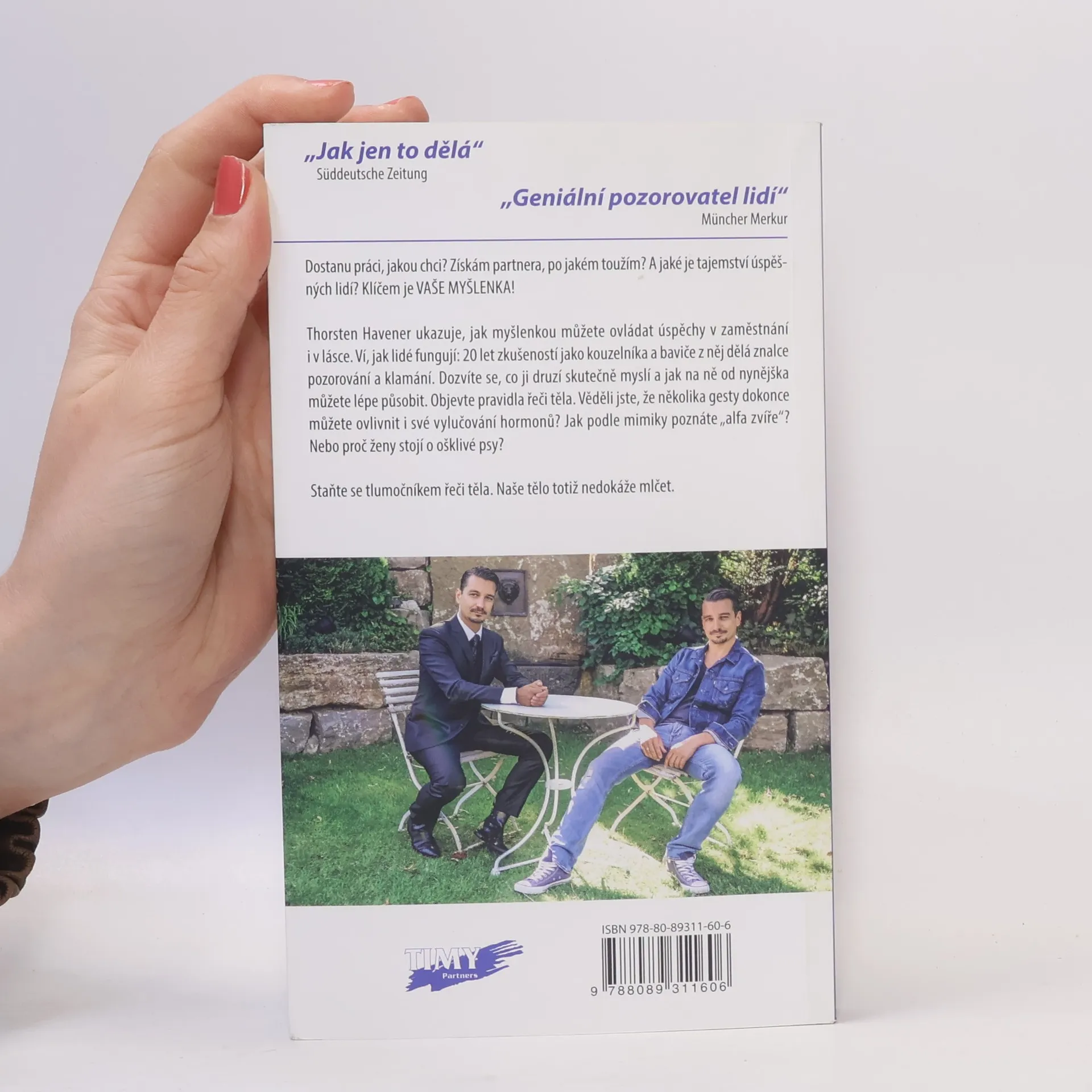 Dostanu práci, jakou chci? Získám partnera, po jakém toužím? A jaké je tajemství úspěšných lidí? Klíčem je VAŠE MYŠLENKA! Thorsten Havener ukazuje, jak myšlenkou můžete ovládat úspěchy v zaměstnání i v lásce. Ví, jak lidé fungují: 20 let zkušeností jako kouzelníka a baviče z něj dělá znalce pozorování a klamání. Dozvíte se, co ji druzí skutečně myslí a jak na ně od nynějška můžete lépe působit. Objevte pravidla řeči těla. Věděli jste, že několika gesty dokonce můžete ovlivnit i své vylučování hormonů? Jak podle mimiky poznáte „alfa zvíře“? Nebo proč ženy stojí o ošklivé psy? Staňte se tlumočníkem řeči těla. Naše tělo totiž nedokáže mlčet.