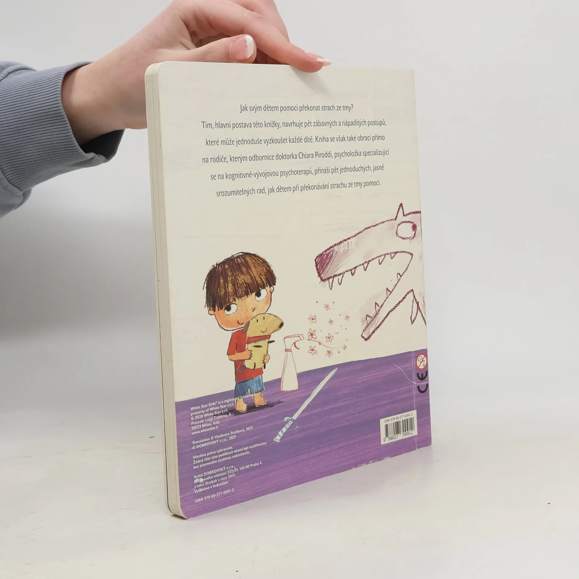 Jak svým dětem pomoci překonat strach ze tmy? Tim, hlavní postava této knížky, navrhuje pět zábavných a nápaditých postupů, které může jednoduše vyzkoušet každé dítě. Kniha se však také obrací přímo na rodiče, kterým odbornice doktorka Chiara Piroddi, psycholožka specializující se na kognitivně-vývojovou psychoterapii, přináší pět jednoduchých, jasně srozumitelných rad, jak dětem při překonávání strachu ze tmy pomoci.