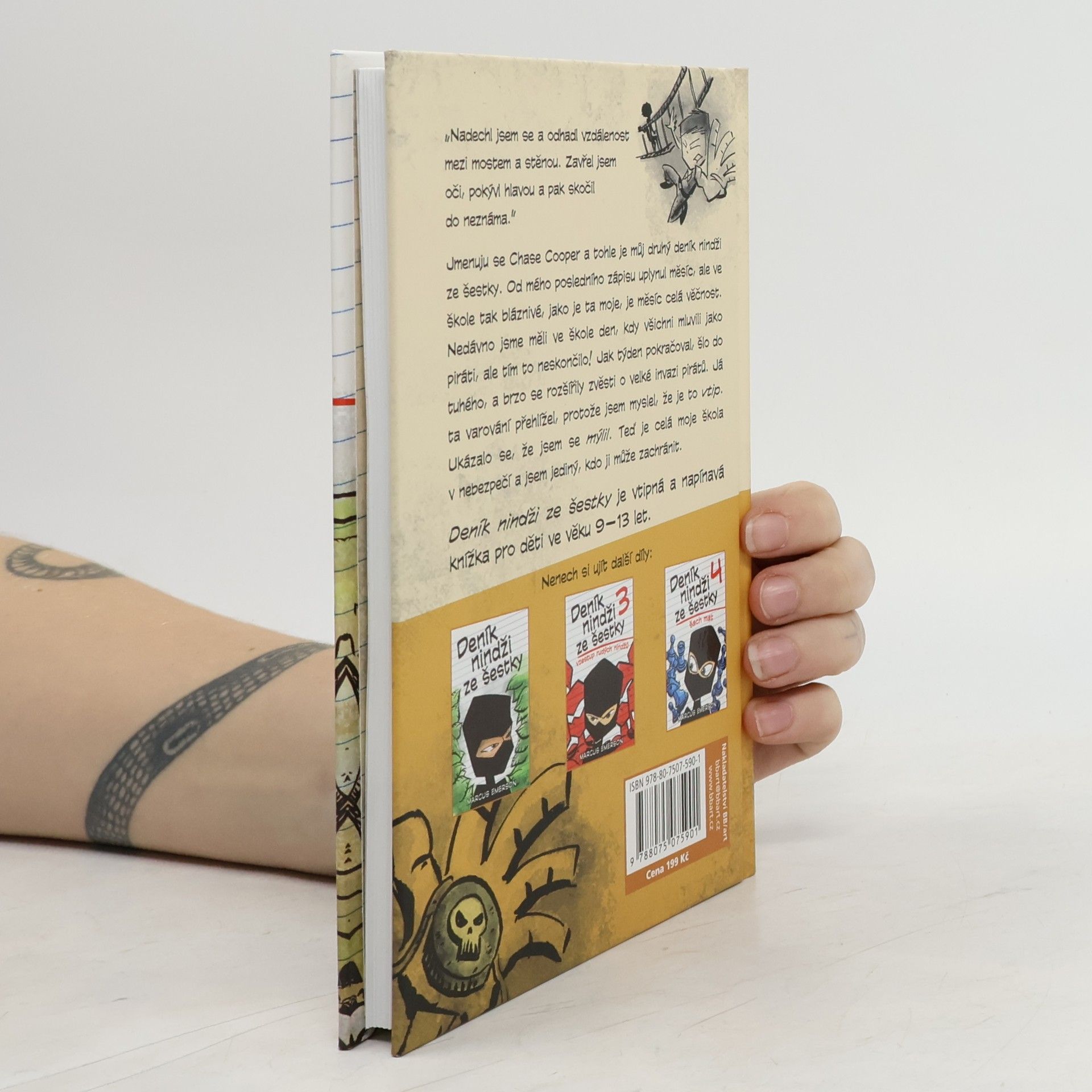 Jmenuji se Chase Cooper a tohle je můj druhý deník nindži ze šestky. Od mého posledního zápisu uplynul měsíc, ale ve škole tak bláznivé, jako je ta moje, je měsíc celá věčnost. Nedávno jsme měli den, kdy všichni mluvili jako piráti, a brzy se rozšířily zvěsti o velké invazi pirátů. Přehlížel jsem varování jako vtip, ale mýlil jsem se. Teď je celá škola v nebezpečí a jsem jediný, kdo ji může zachránit. Tento deník je vtipné dobrodružství pro děti ve věku 9-12 let. Chase Cooper je srdcem série o nindžích, ve volném čase čte komiksy, hraje videohry a dívá se s kamarády na staré horory. Jeho nejlepší přátelé si z něj dělají legraci, ale to je spojuje. Vidíme svět jeho očima a prožíváme jeho brutalitu a upřímnost, když se snaží zapadnout jako nováček ve škole. Chase je také Marcus Emerson, spisovatel, který vlastní víc komiksů než románů a sní o dobrodružství a vzrušení. Vyprávění příběhů je jeho vášní, a proto se rozhodl vydávat své knihy sám. Cílem je vytvořit svět, s nímž se děti mohou ztotožnit, ale zároveň dost záhadný, aby vzbudil představivost. Když klan nindžů nabídl Chaseovi, aby se k nim přidal, neváhal. Kdo by taky váhal?