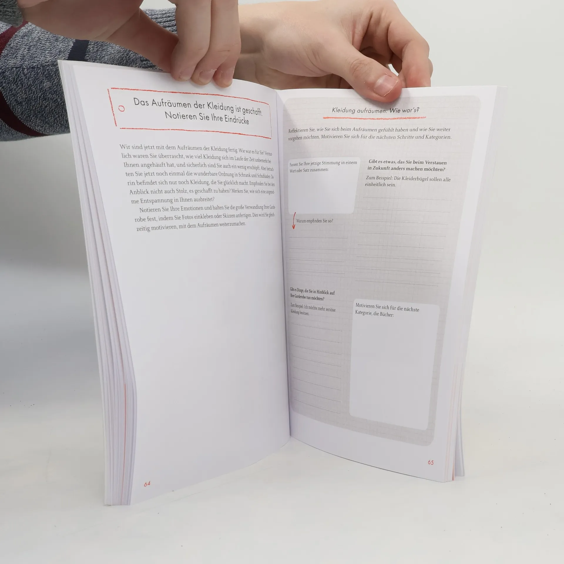 Versuchen Sie auch immer wieder aufs Neue, das Chaos in Ihrem Zuhause in den Griff zu bekommen? Haben Sie den Eindruck, dass Sie zu viele Schubladen mit Kleinkram haben? Wissen Sie einfach nicht, wo und wie Sie am besten mit dem Aufräumen anfangen sollen? Kein Problem! Denn mithilfe von Checklisten, visuellen Anleitungen und grundlegenden Tipps führt Sie Marie Kondo durch die einzelnen Schritte des Entrümpelns. Darüber hinaus helfen Ihnen Reflexions- und Journaling-Übungen dabei, ein Glücksgefühl beim Aufräumen zu entdecken und Ihren Vorstellungen von einem idealen Leben auf die Spur zu kommen. Nie war Aufräumen so leicht!