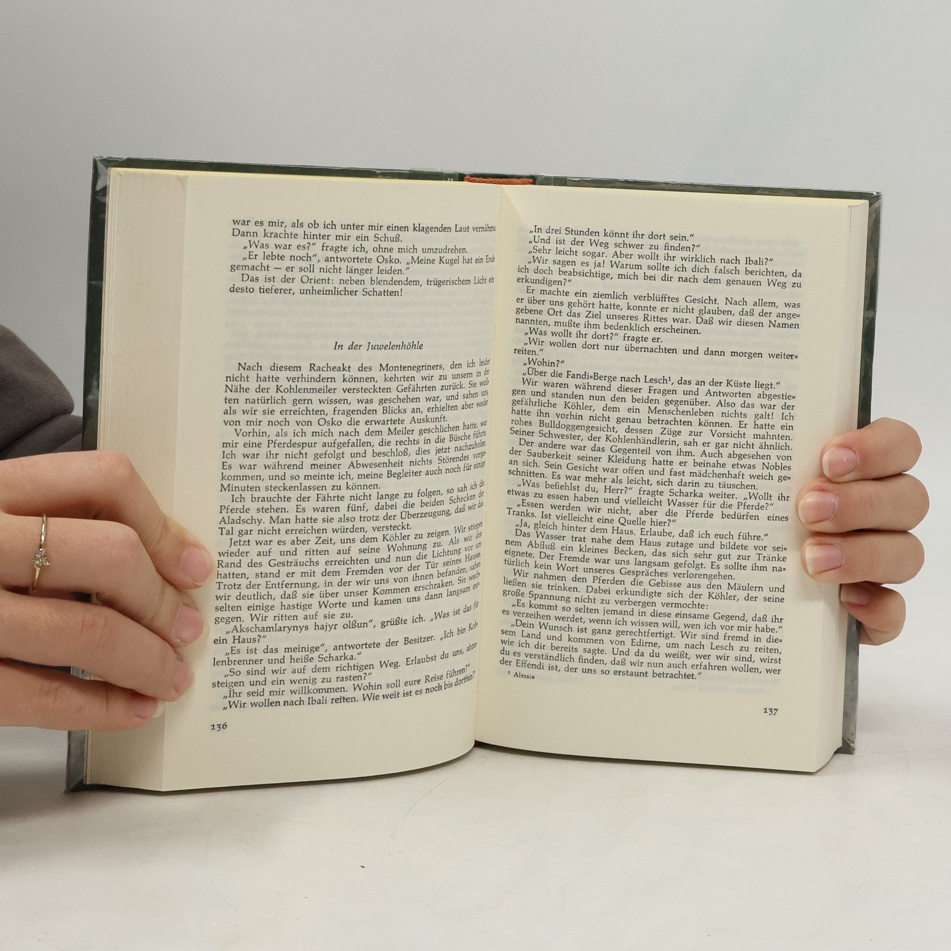 Nach Abenteuern in der Teufelsschlucht und bei der Juwelenhöhle treffen Kara Ben Nemsi und seine Begleiter auf das Oberhaupt der Verbrecher, den Schut. Manche gefährliche Situation wird heraufbeschworen, ehe die Jagd, die in der tunesischen Wüste begann, in Albanien zu Ende geht. Der Schut gehört zu einer sechsteiligen Reihe. Weitere Bände: Durch die Wüste (Band 1), Durchs wilde Kurdistan (Band 2), Von Bagdad nach Stambul (Band 3), In den Schluchten des Balkan (Band 4), Durch das Land der Skipetaren (Band 5).