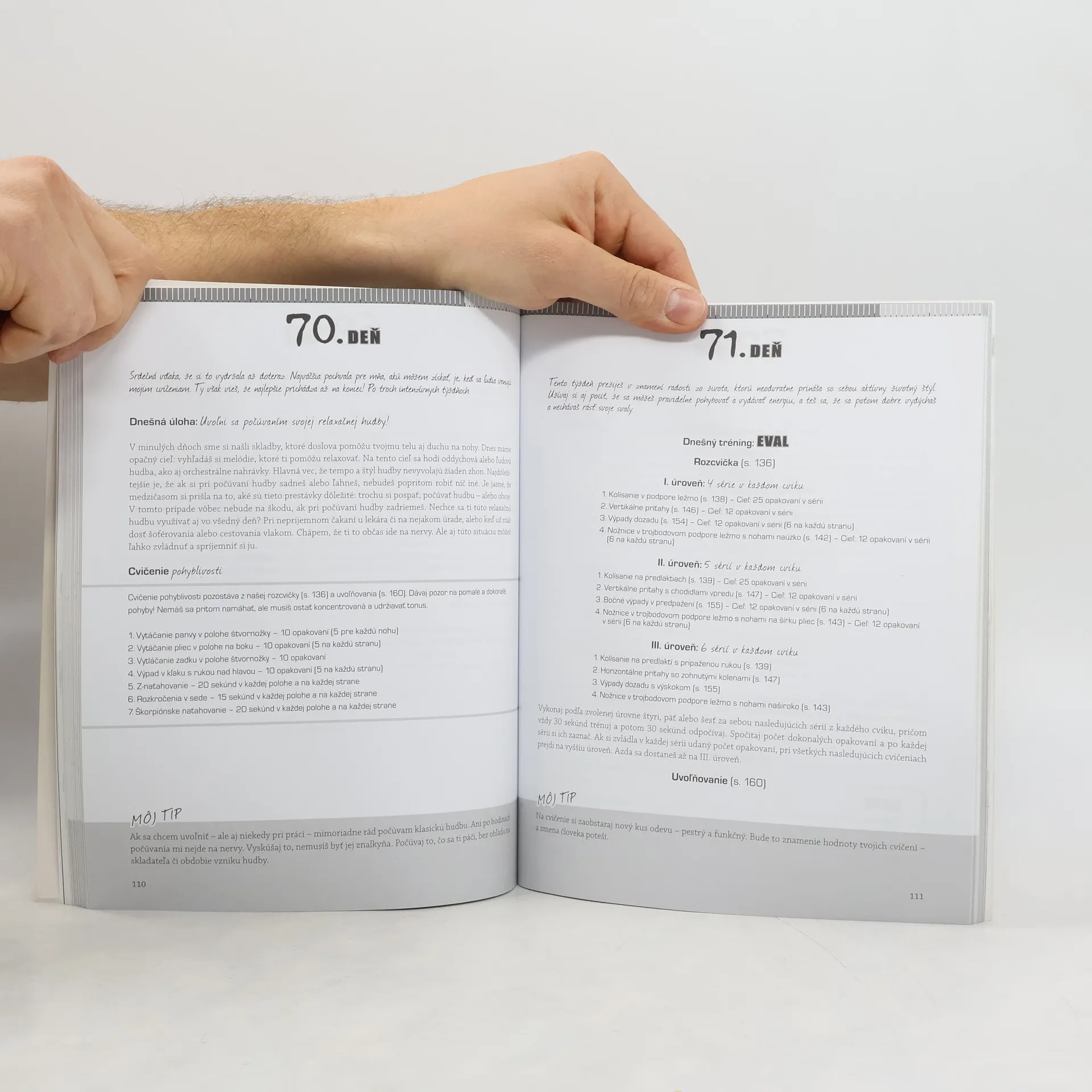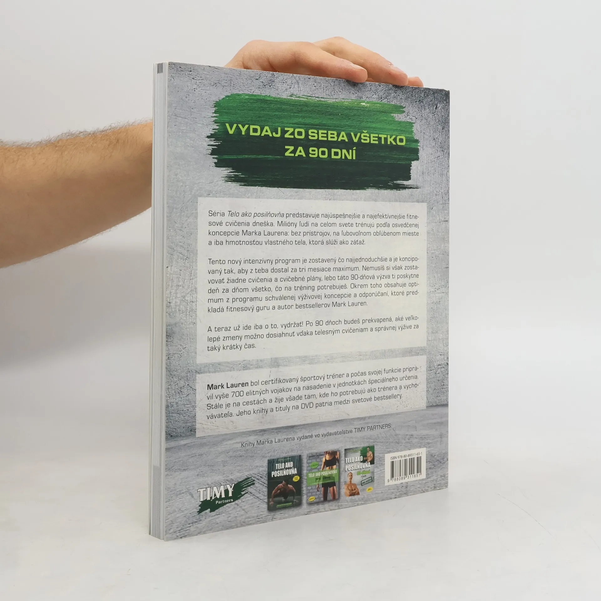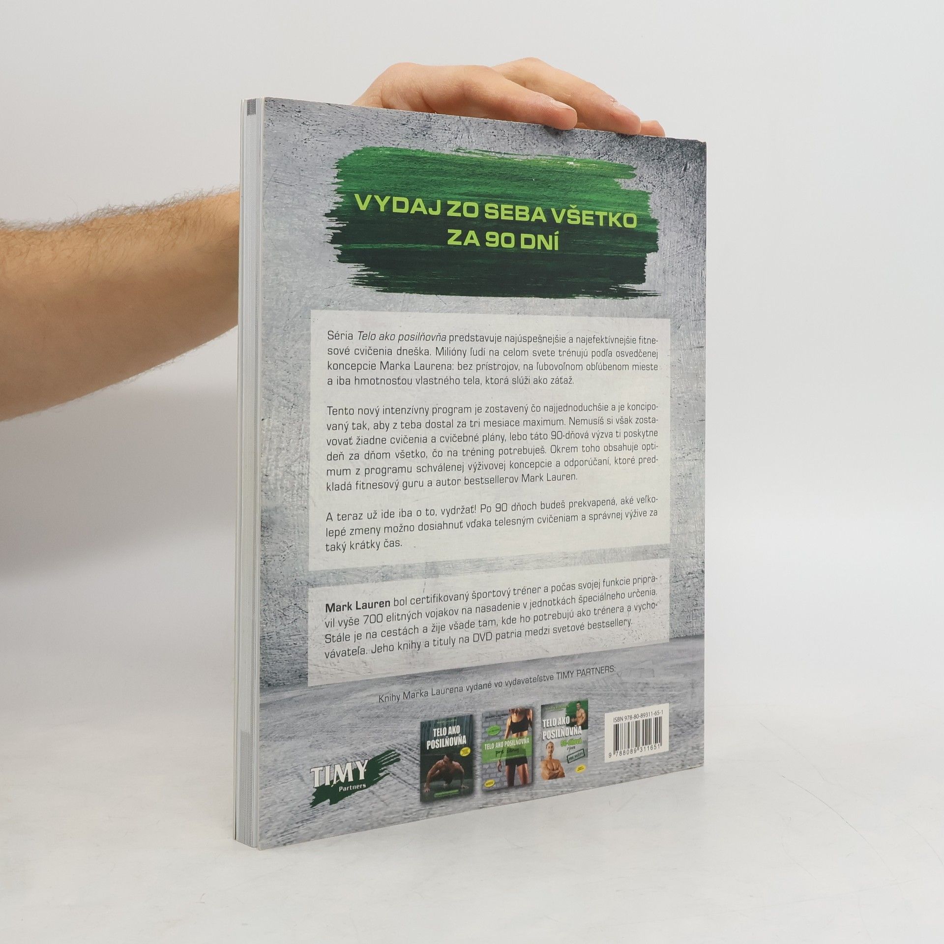 Vydaj zo seba všetko za 90 dní Séria Telo ako posilňovňa predstavuje najúspešnejšie a najefektívnejšie fitnesové cvičenia dneška. Milióny ľudí na celom svete trénujú podľa osvedčenej koncepcie Marka Laurena: bez prístrojov, na ľubovoľnom obľúbenom mieste a iba hmotnosťou vlastného tela, ktorá slúži ako záťaž. Tento nový intenzívny program je zostavený čo najjednoduchšie a je koncipovaný tak, aby z teba dostal za tri mesiace maximum. Nemusíš si však zostavovať žiadne cvičenia a cvičebné plány, lebo táto 90-dňová výzva ti poskytne deň za dňom všetko, čo na tréning potrebuješ. Okrem toho obsahuje optimum z programu schválenej výživovej koncepcie a odporúčaní, ktoré predkladá fitnesový guru a autor bestsellerov Mark Lauren. A teraz už ide iba o to, vydržať! Po 90 dňoch budeš prekvapená, aké veľkolepé zmeny možno dosiahnuť vďaka telesným cvičeniam a správnej výžive za taký krátky čas.
