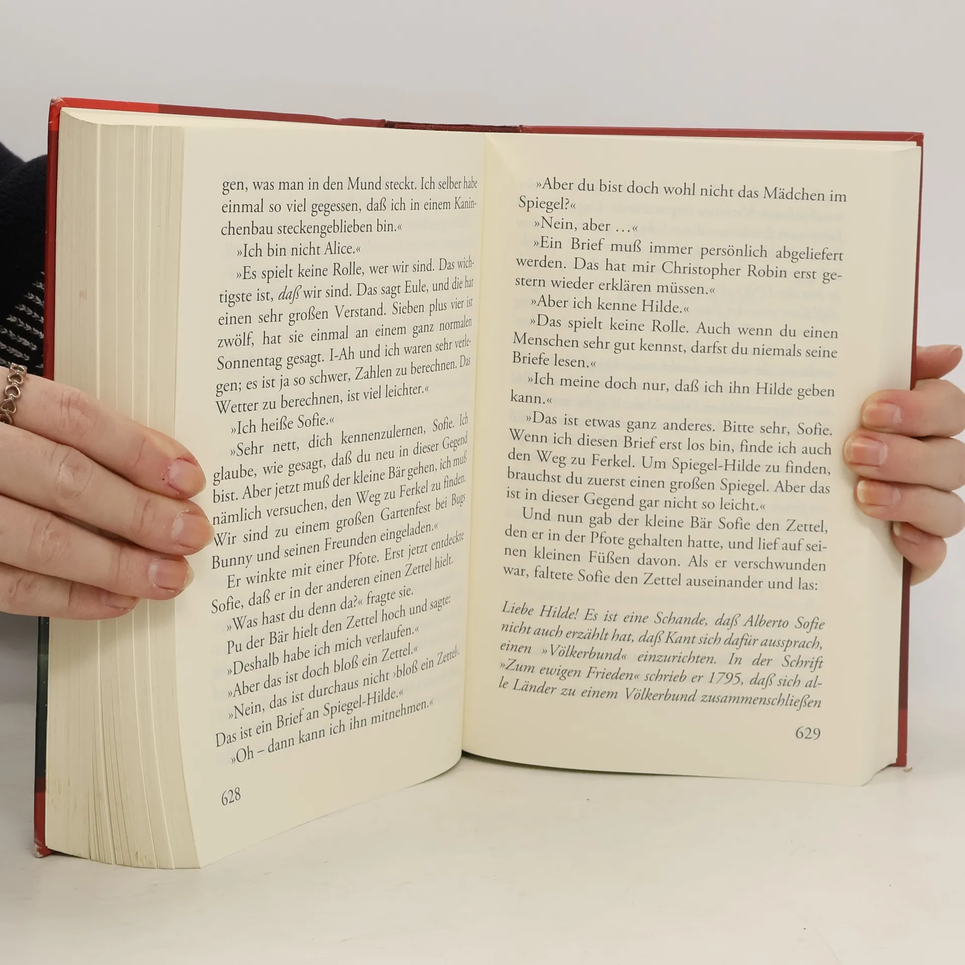 Mysteriöse Briefe landen im Briefkasten der 15jährigen Sofie Amundsen in Oslo. Was sollen diese Fragen: »Wer bist du?«, »Was ist ein Mensch?« und »Woher kommt die Welt?«. Sofie ist irritiert. Die Briefe werden ausführlicher und entführen sie in die abenteuerliche und geheimnisvolle Gedankenwelt der großen Philosophen. Ihr unbekannter Briefeschreiber erzählt Sofie die Geschichte Europas, der Antike, des Mittelalters und der Renaissance und dann nimmt die Geschichte eine unglaubliche Wendung.
