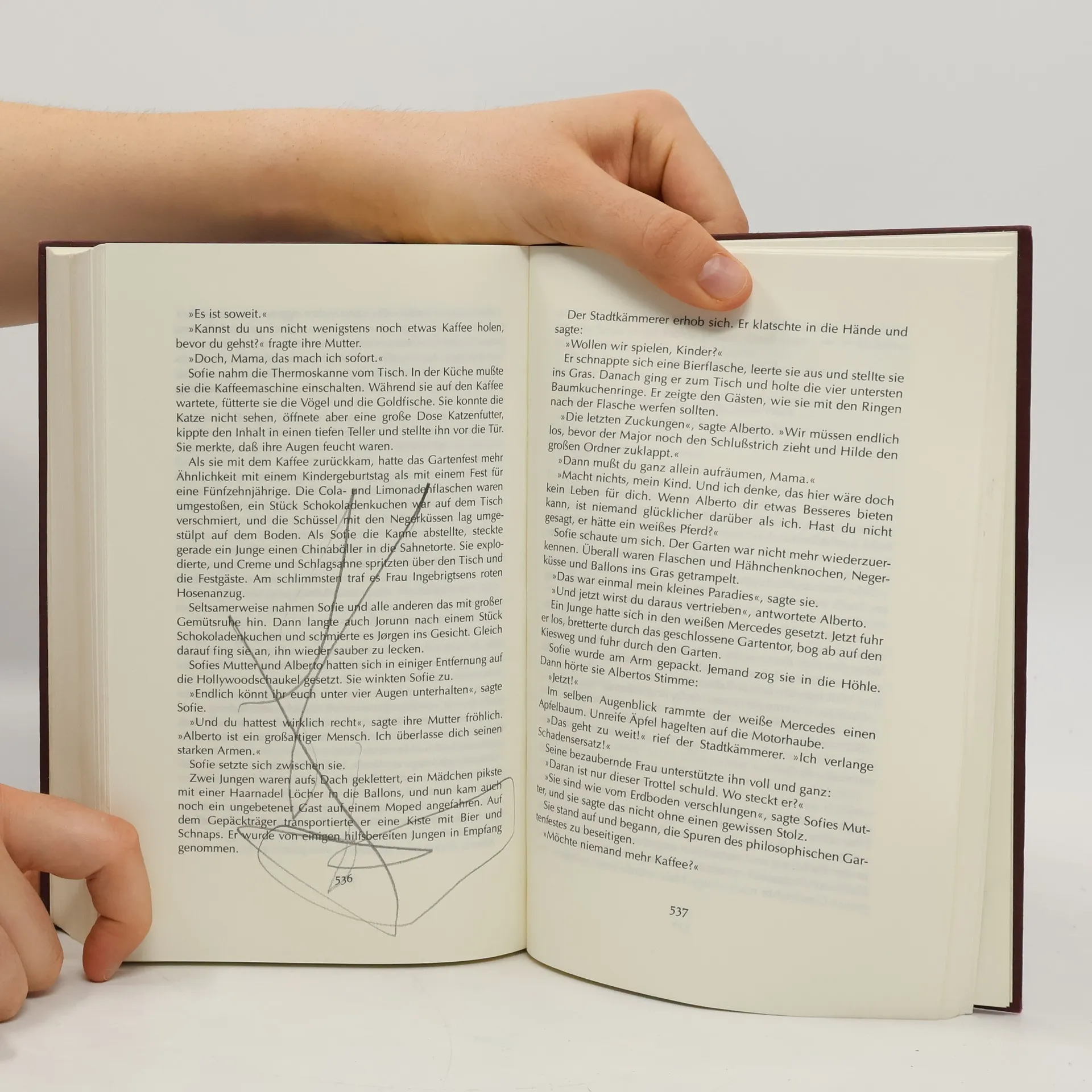 »Ein dickes Buch, mit spitzen Fingern angefaßt und mit Begeisterung zugeklappt: ein großer Wurf im wörtlichen wie übertragenen Sinn.« Die Zeit Mysteriöse Briefe landen im Briefkasten der 15jährigen Sofie Amundsen in Oslo. Was sollen diese Fragen: »Wer bist du?«, »Was ist ein Mensch?« und »Woher kommt die Welt?«. Sofie ist irritiert. Die Briefe werden ausführlicher und entführen sie in die abenteuerliche und geheimnisvolle Gedankenwelt der großen Philosophen. Ihr unbekannter Briefeschreiber erzählt Sofie die Geschichte Europas, der Antike, des Mittelalters und der Renaissance und dann nimmt die Geschichte eine unglaubliche Wendung.