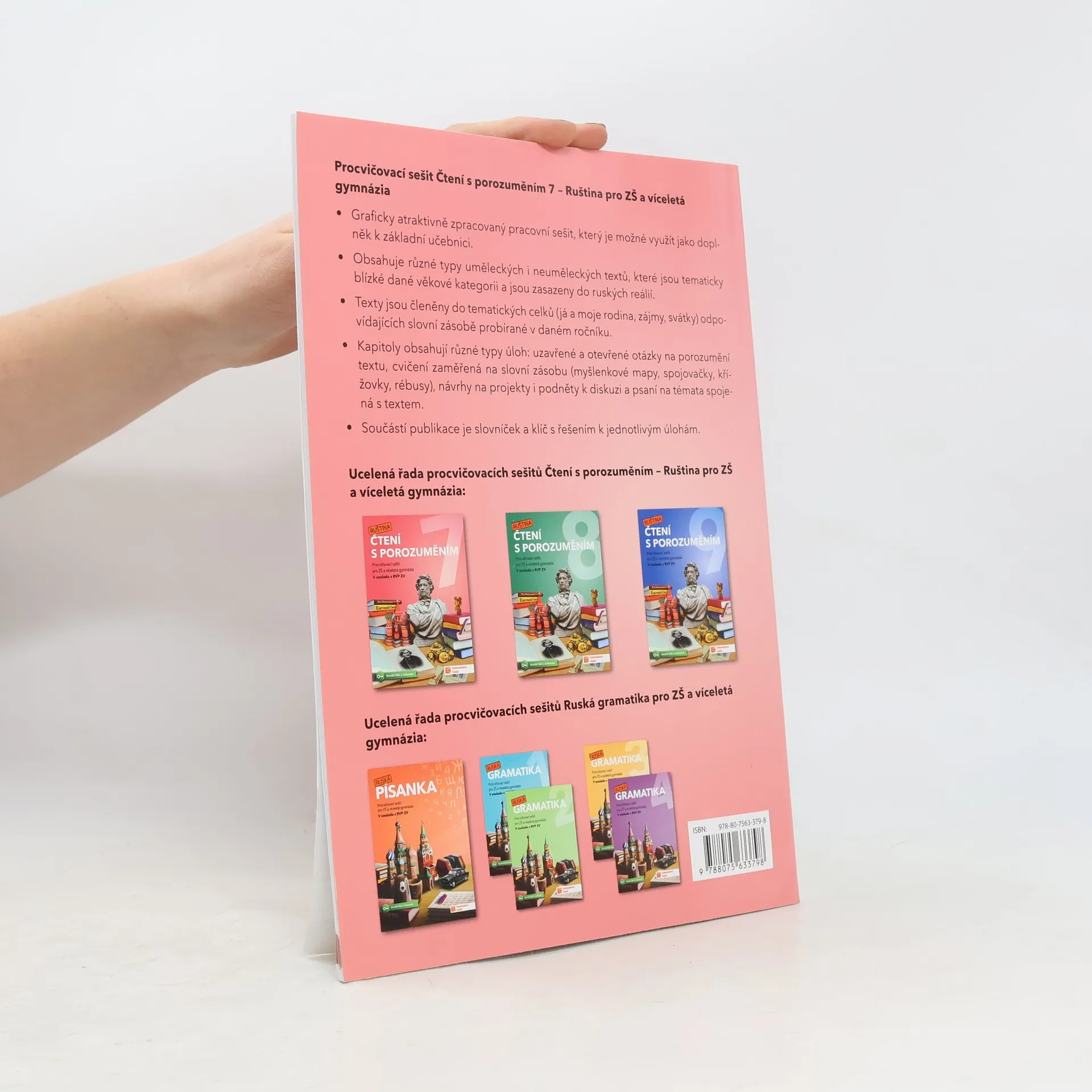 Nové publikace Čtení s porozuměním pro ZŠ a víceletá gymnázia (Ruština) jsou graficky atraktivně zpracované pracovní sešity, které je možné využít jako doplnění k základní učebnici. Obsahují různé typy uměleckých i neuměleckých textů, které jsou tematicky blízké dané věkové kategorii a jsou zasazeny do ruských reálií. Texty jsou členěny do tematických celků odpovídajících slovní zásobě probírané v daných ročnících. Kapitoly obsahují úlohy různých typů: uzavřené a otevřené otázky na porozumění textu, cvičení zaměřená na slovní zásobu (myšlenkové mapy, spojovačky, křížovky, rébusy), návrhy na projekty i podněty k diskuzi a psaní na témata spojená s textem. Součástí publikace je slovníček a klíč s řešením k jednotlivým úlohám.
