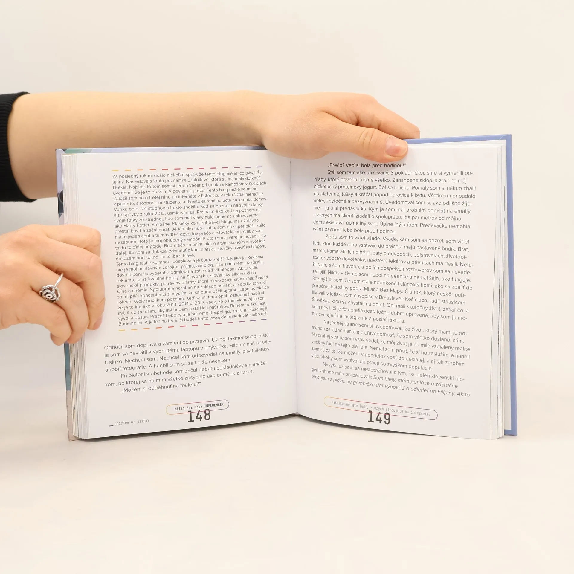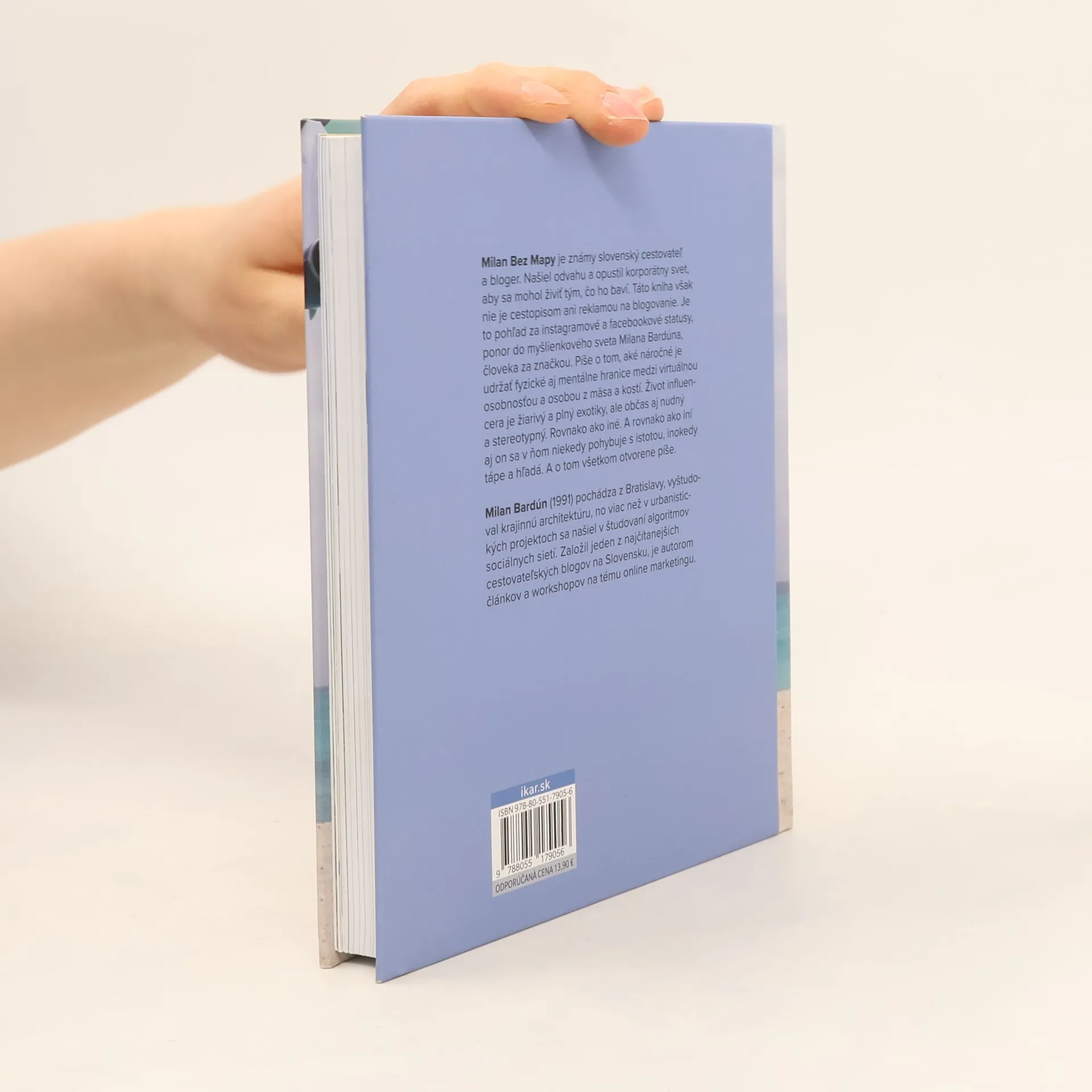 Milan Bez Mapy je známy slovenský cestovateľ a bloger. Našiel odvahu a opustil korporátny svet, aby sa mohol živiť tým, čo ho baví. Táto kniha však nie je cestopisom ani reklamou na blogovanie. Je to pohľad za instagramové a facebookové statusy, ponor do myšlienkového sveta Milana Bardúna, človeka za značkou. Píše o tom, aké náročné je udržať fyzické aj mentálne hranice medzi virtuálnou osobnosťou a osobou z mäsa a kostí. Život influencera je žiarivý a plný exotiky, ale občas aj nudný a stereotypný. Rovnako ako iné. A rovnako ako iní aj on sa v ňom niekedy pohybuje s istotou, inokedy tápe a hľadá. A o tom všetkom otvorene píše.