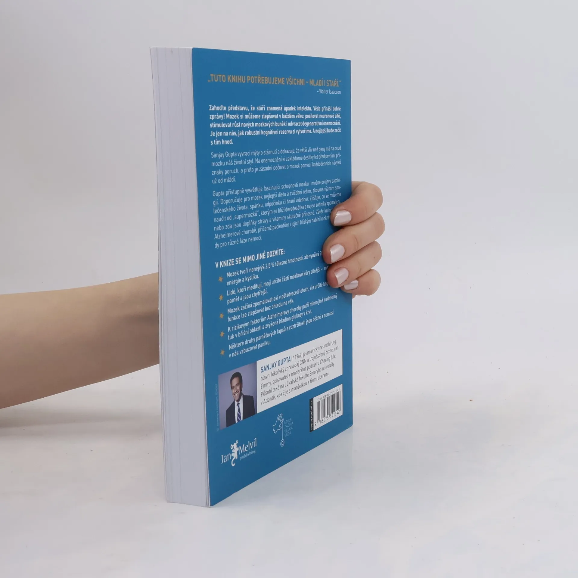Zahoďte představu, že stáří znamená úpadek intelektu. Věda přináší dobré zprávy: mozek si můžeme zlepšovat v každém věku, posilovat neuronové sítě a odvracet degenerativní onemocnění. Klíčové je, jak robustní kognitivní rezervu si vytvoříme, a je nejlepší začít hned. Sanjay Gupta vyvrací mýty o stárnutí a ukazuje, že náš životní styl má větší vliv na osud mozku než geny. Onemocnění si zakládáme desítky let před prvními příznaky, proto je důležité pečovat o mozek už od mládí. Gupta přístupně vysvětluje fascinující schopnosti mozku a doporučuje nejlepší dietu a cvičební režim. Zkoumá význam společenského života, spánku a hraní videoher. Zjistí, co se můžeme naučit od „supermozků“ blížících se devadesátce, a zkoumá přínos doplňků stravy a vitaminů. Závěr knihy se věnuje Alzheimerově chorobě a nabízí konkrétní návody pro pacienty a jejich blízké. V knize se dozvíte, že mozek tvoří 2,5 % tělesné hmotnosti, ale využívá 20 % energie a kyslíku. Lidé, kteří meditují, mají silnější části mozkové kůry a lepší paměť. Mozek začíná zpomalovat kolem pětadvaceti let, ale kognitivní funkce lze zlepšovat bez ohledu na věk. Rizikovými faktory Alzheimerovy choroby jsou nadměrný břišní tuk a zvýšená hladina glukózy. Některé paměťové lapsy jsou běžné a nemusí vyvolávat paniku.