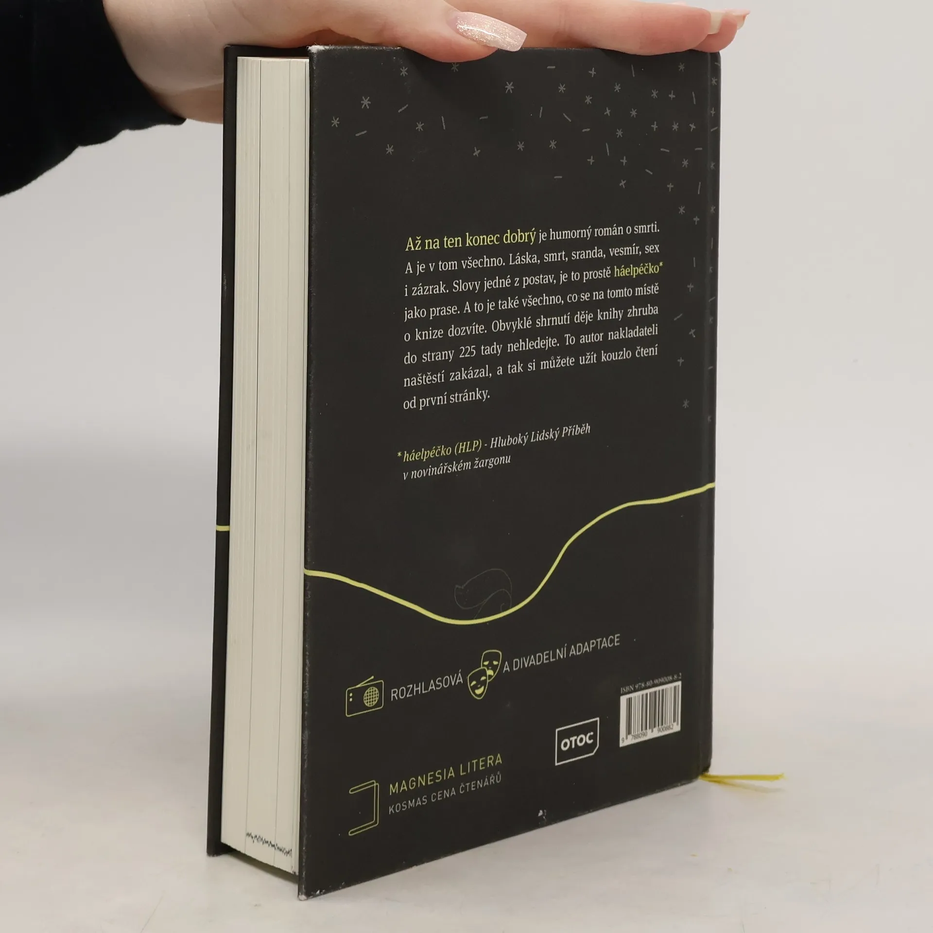 Humorný román o smrti. A je v tom všechno. Láska, smrt, sranda, vesmír, sex i zázrak. Slovy jedné z postav, je to prostě „háelpéčko* jako prase“. (*háelpéčko (HLP) –Hluboký Lidský Příběh v novinářském žargonu) Pavel Tomeš je stand-up komik, kterého můžete znát z TV pořadů Comedy club a Na stojáka. Vydal sbírky fejetonů Tohle lidi hodně berou, Zápisky malého tyranosaura a Facky z Marsu.