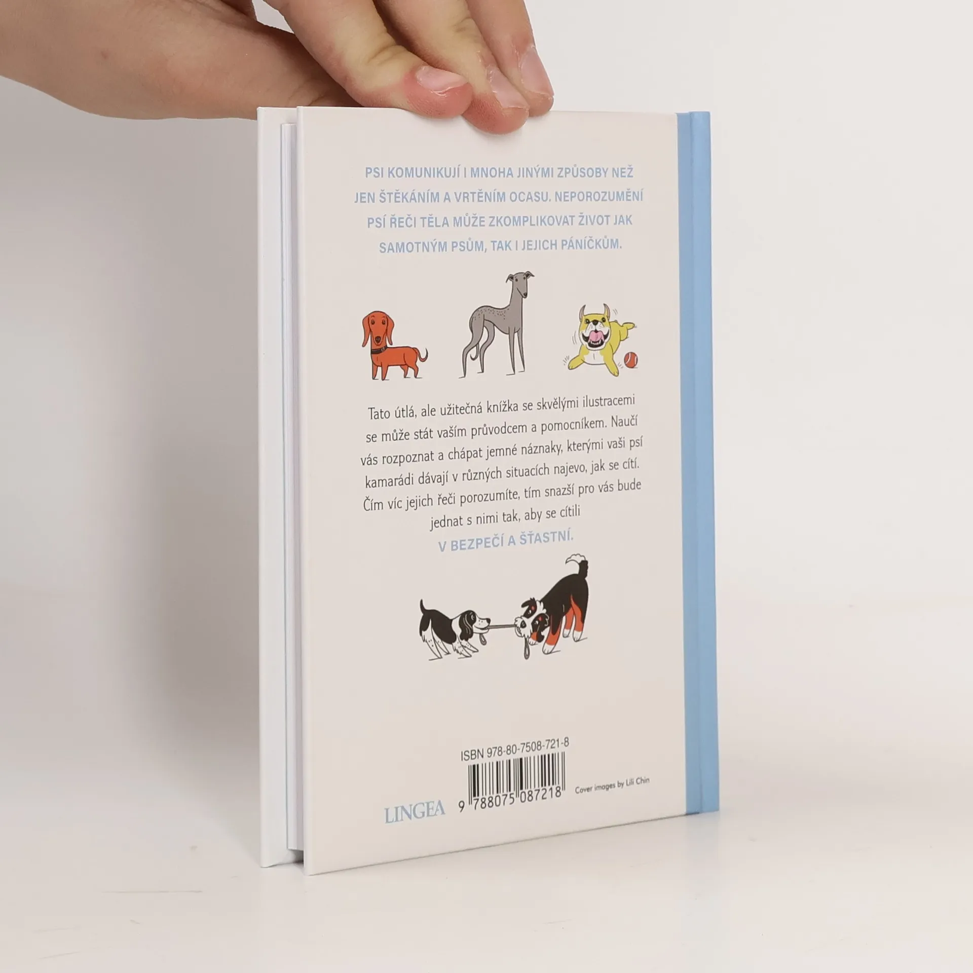 Tato veselá knížka s krásnými ilustracemi potěší každého pejskaře a naučí vás rozpoznávat jemné signály, kterými psi vyjadřují své pocity. Čím lépe porozumíte jejich řeči, tím snazší bude zajistit, aby se cítili bezpečně a šťastně. Psi komunikují nejen štěkáním a vrtěním ocasu, ale i tělesnou řečí, a neporozumění těmto signálům může zkomplikovat život jak psům, tak jejich páníčkům. Stejně jako lidé prožívají psi strach, zlost, štěstí, smutek či překvapení. Mají své oblíbené a nenáviděné věci a snaží se vyhnout konfliktům. Když pes naznačuje, že je něco příliš intenzivní, může se situace zhoršit, pokud špatně přečteme jeho signály. Agresivní chování, jako je vrčení nebo kousání, je obvykle až poslední možností, když ostatní signály selhaly. Kniha obsahuje ilustrace, které vám pomohou rozlišovat mezi podobnými výrazy a projevy psího chování. Porovnávání těchto kreseb odhalí klíčové rozdíly a poskytne kontext pro správné porozumění. Věříme, že vám kniha pomůže lépe chápat psí řeč a tím usnadní interakci s vaším čtyřnohým přítelem. Věnujte mu pozornost v různých situacích a nechte ho, aby vám ukázal, co ho stresuje, vzrušuje a co mu přináší radost!