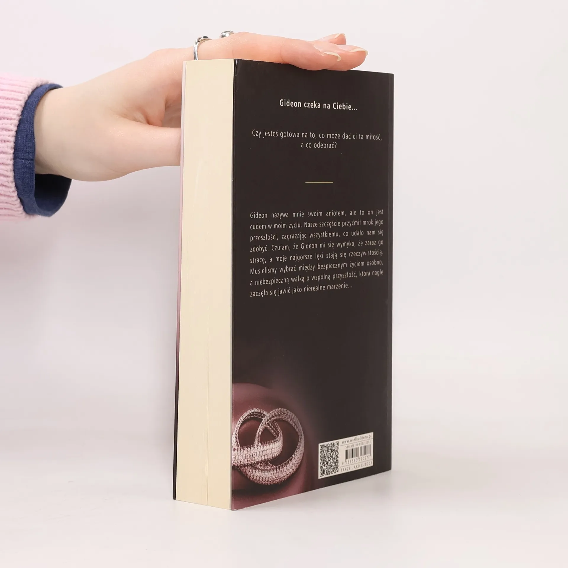 Długo wyczekiwany, kolejny tom bestsellerowej serii "Dotyk Crossa". Gideon nazywa mnie swoim aniołkiem, ale to przecież on jest cudem w moim życiu. Mój zraniony wojownik, gotów pokonać dręczące mnie demony, podczas gdy sam ucieka przed własnymi. Przyrzeczenie, które sobie złożyliśmy, powinno nas połączyć mocniej niż więzy cielesne, lecz otworzyło stare rany, odsłoniło ból i niepewność. Obudziło naszych zaciekłych wrogów. Czułam, że Gideon mi się wymyka, a moje najskrytsze lęki stają się rzeczywistością. Nie jestem pewna, czy sprostam wymaganiom tej miłości. W radość naszego życia wtargnął mrok przeszłości Gideona, zagrażając wszystkiemu, na co tak ciężko pracowaliśmy. Musieliśmy dokonać trudnego wyboru: pomiędzy bezpiecznym życiem, jakie wiedliśmy, nie będąc razem, a walką o przyszłość, która nagle zaczęła się jawić jako niemożliwe do spełnienia marzenie...