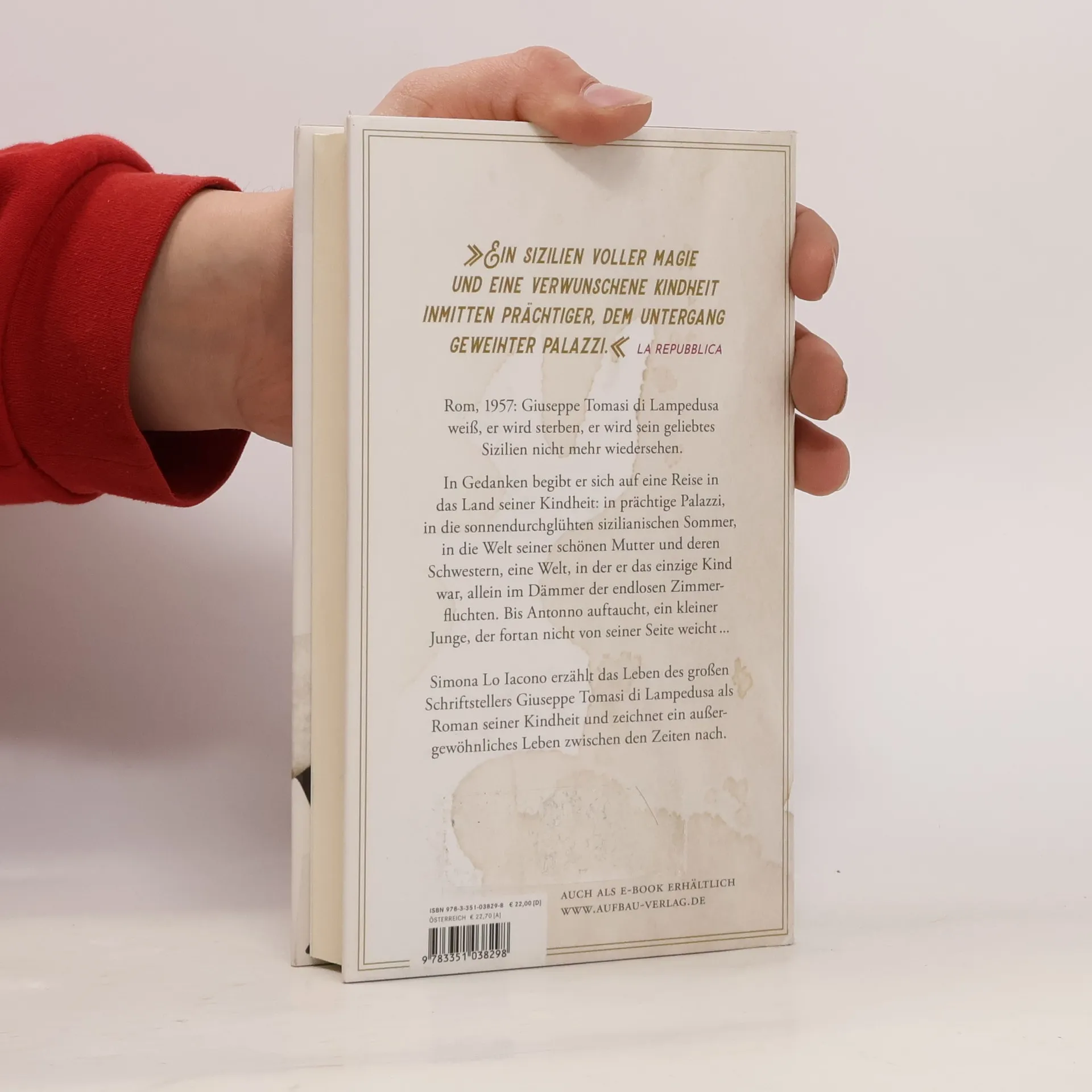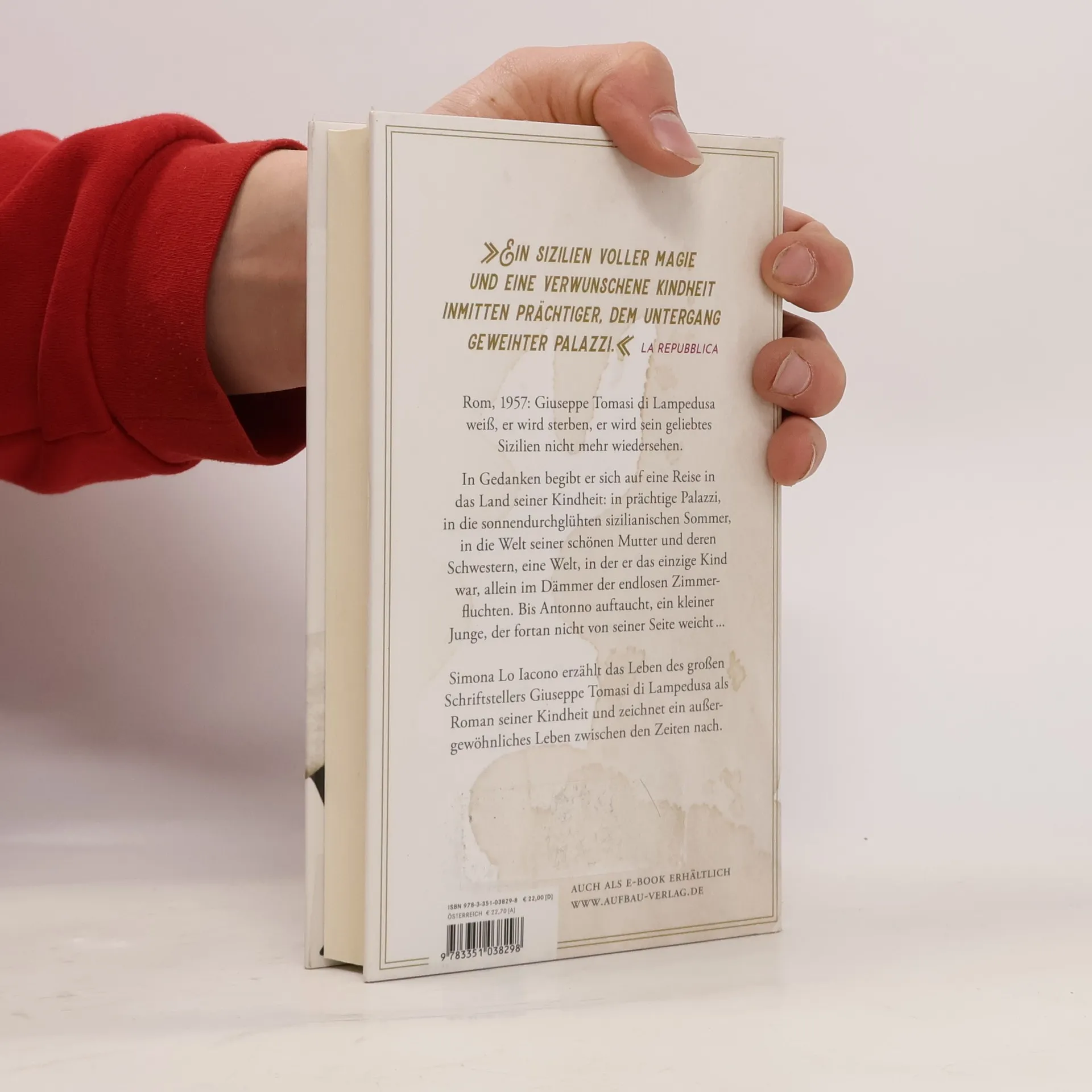 Ein Roman über den Autor des Weltbestsellers "Der Leopard". „Ein Sizilien voller Magie und eine verwunschene Kindheit inmitten prächtiger, dem Untergang geweihter Palazzi.“ La Repubblica. Rom, 1957: Giuseppe Tomasi di Lampedusa weiß, er wird sterben, er wird sein geliebtes Sizilien nicht mehr wiedersehen. In Gedanken begibt er sich auf eine Reise in das Land seiner Kindheit, in prächtige Palazzi, in die sonnendurchglühten sizilianischen Sommer, in die Welt seiner schönen Mutter und deren Schwestern, eine Welt, in der er das einzige Kind war, allein im Dämmer der endlosen Zimmerfluchten. Bis Antonno auftaucht, ein kleiner Junge, der nicht von seiner Seite weicht in jenem Sommer, in dem Giuseppe erwachsen wird. ... Simona Lo Iacono erzählt das Leben des großen Schriftstellers Giuseppe Tomasi di Lampedusa als Roman seiner Kindheit und zeichnet ein außergewöhnliches Leben zwischen den Zeiten nach.