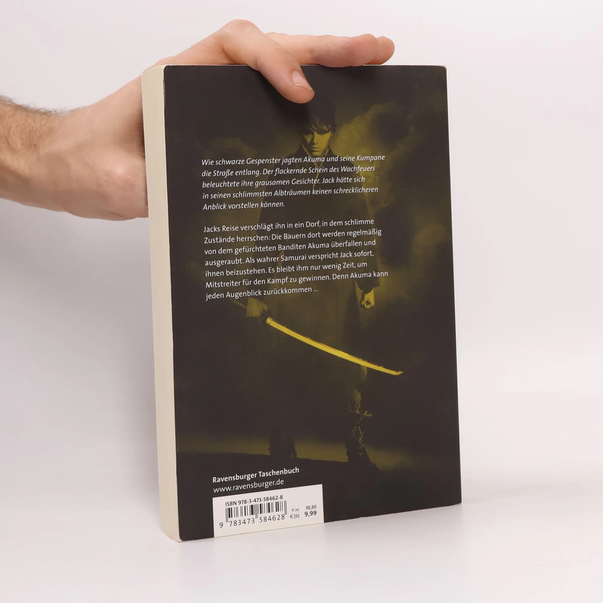 "Wie schwarze Gespenster jagten Akuma und seinen Kumpane die Straße entlang. Der flackernde Schein des Wachfeuers beleuchtete ihre grausamen Gesichter. Jack hätte sich in seinen schlimmsten Albträumen keinen schrecklicheren Anblick vorstellen können." Jacks Reise verschlägt ihn in ein Dorf, in dem schlimme Zustände herrschen: Die Bauern dort werden regelmäßig von dem gefürchteten Bandit Akuma überfallen und ausgeraubt. Als wahrer Samurai verspricht Jack sofort, ihnen beizustehen. Es bleibt ihm nur wenig Zeit, um Mitstreiter für den Kampf zu gewinnen. Denn Akuma kann jeden Augenblick zurückkommen …