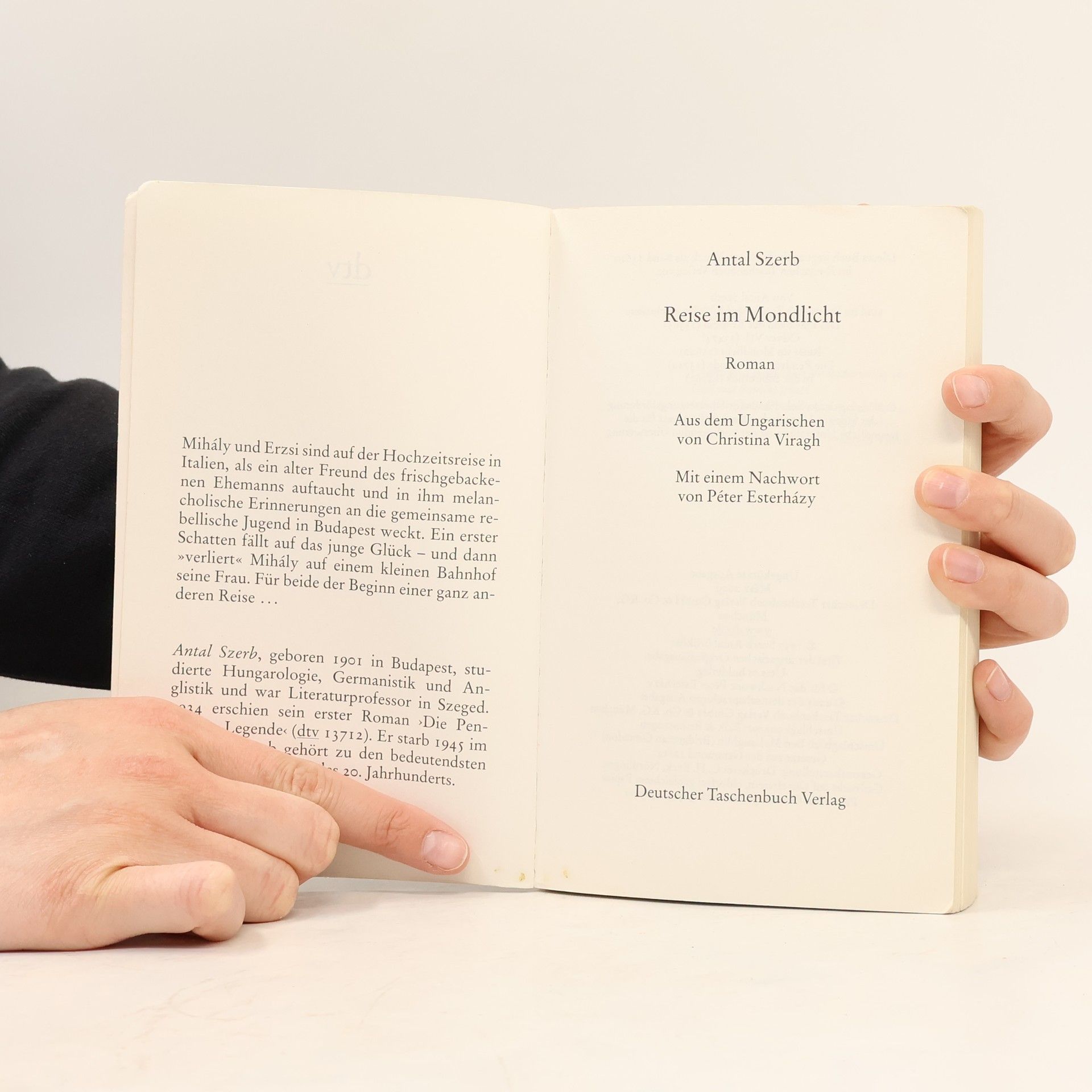 Mit feiner Ironie erzählt Antal Szerb in diesem wahrhaft europäischen Roman die Geschichte einer jungen Ehe. Er beleuchtet den Weg des frischvermählten Paars Erzsi und Mihály wie der helle Mond eine venezianische Gasse. Bereits auf der Hochzeitsreise in Italien wird Mihály durch die unerwartete Begegnung mit einem alten Freund von melancholischen Erinnerungen an seine rebellische Jugend überwältigt, und erste Phantasien über das Ende ihrer Beziehung beschleichen ihn. Als er seine Frau auf der Weiterreise an einem kleinen Bahnhof aus Versehen 'verliert', begreift Mihály dies als ein Zeichen, und eine ganz andere Reise beginnt, eine Schattenreise zum Selbst.