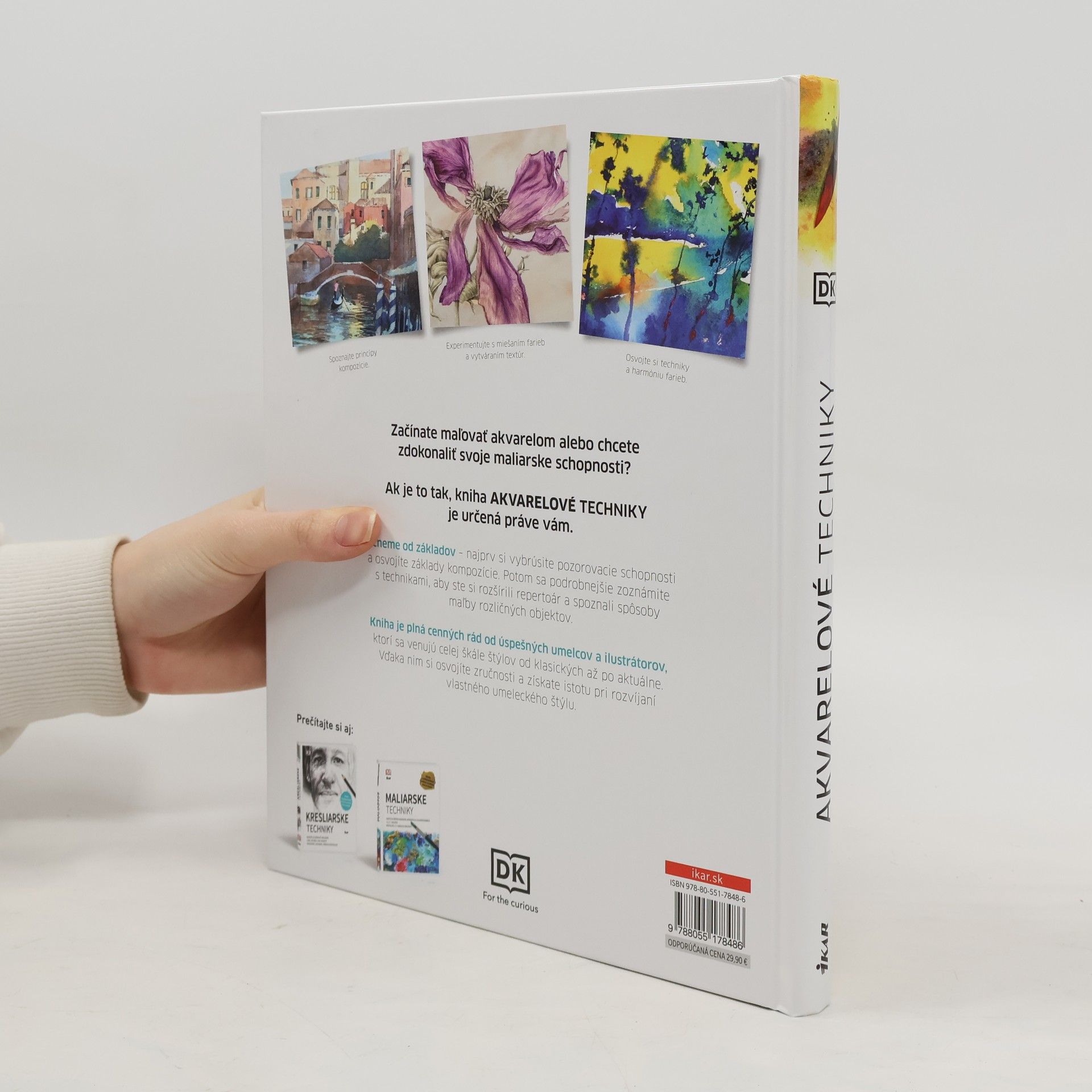 Rozvíjajte si vlastný štýl pod vedením profesionálov! Začínate maľovať akvarelom alebo si chcete zdokonaliť svoje maliarske schopnosti? Ak je to tak, kniha Akvarelové techniky je určená práve vám. Začneme od základov – najprv si vybrúsite pozorovacie schopnosti a osvojíte základy kompozície. Potom sa podrobnejšie zoznámite s technikami, aby ste si rozšírili repertoár a spoznali spôsoby maľby rozličných objektov. Naučíte sa maľovať krajinky, ľudí, zátišia a ďalšie námety. Dozviete sa, ako experimentovať s miešaním farieb a vytváraním textúr. Kniha je plná cenných rád od úspešných umelcov a ilustrátorov, ktorí sa venujú celej škále štýlov od klasických až po aktuálne. Vďaka nim si osvojíte zručnosti a získate istotu pri rozvíjaní vlastného umeleckého štýlu. Z anglického originálu preložila Zuzana Jánska.