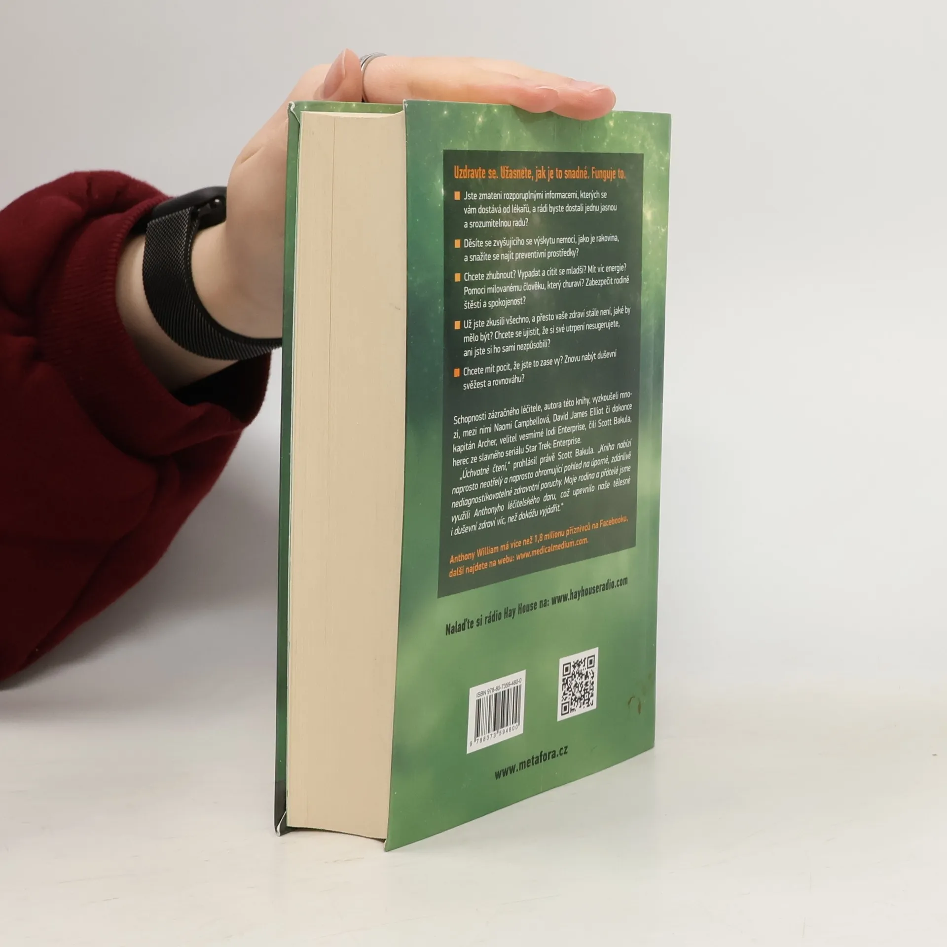 Novodobé médium odhaluje tajemství záhadných nemocí. Uzdravte se. Užasnete, jak je to snadné. Funguje to. Jste zmateni rozporuplnými informacemi, kterých se vám dostává od lékařů, a rádi byste dostali jednu jasnou, srozumitelnou radu? Děsíte se rakoviny? Chcete zhubnout? Vypadat a cítit se mladší? Mít víc energie? Nebo jste prostě nemocní a nikdo neví, co s vámi? Dokonce vám naznačují, že jste blázni a že si své potíže sugerujete. Už jste všechno zkusili, všude zašli, a přesto vám žádný doktor nepomohl. Pak jste na té správné adrese. Léčitel Anthony William zná cestu z toho začarovaného kruhu. Tam někde ve vyšších sférách jsou uložené veškeré informace. Řešení všeho. Léčebné metody, které lékařská věda objeví až pár let či dokonce desetiletí. A Anthony je zná.