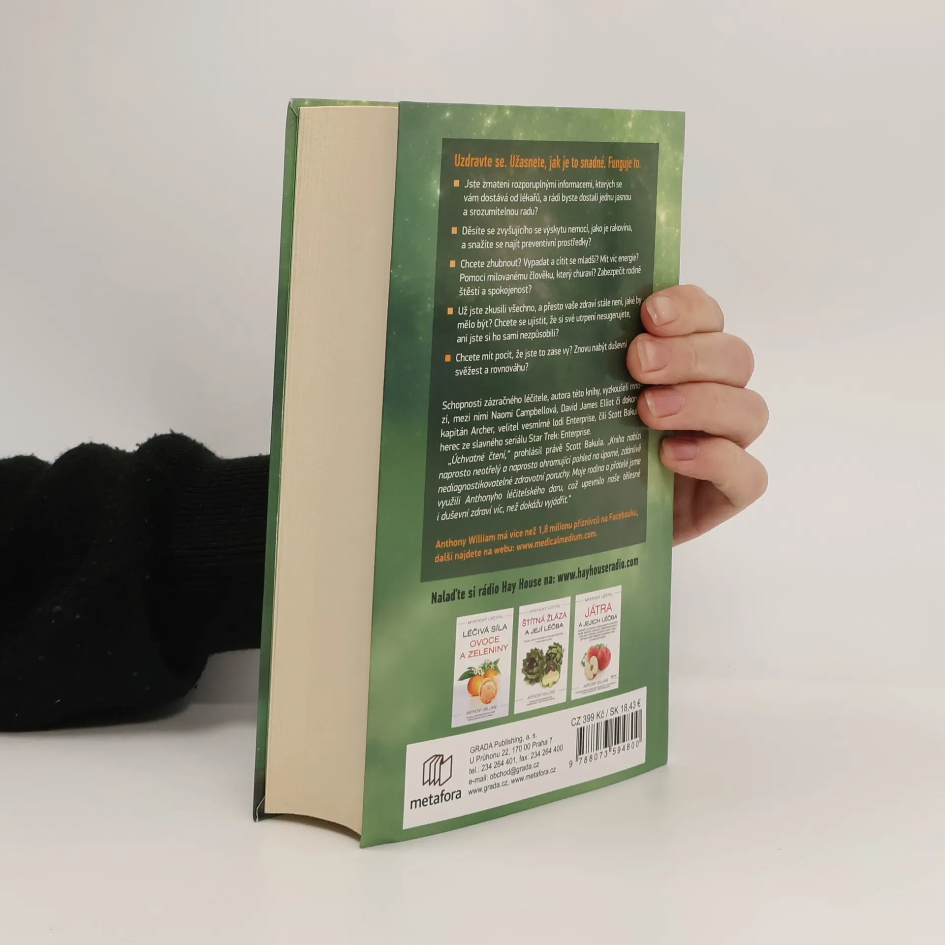 Novodobé médium odhaluje tajemství záhadných nemocí. Uzdravte se. Užasnete, jak je to snadné. Funguje to. Jste zmateni rozporuplnými informacemi, kterých se vám dostává od lékařů, a rádi byste dostali jednu jasnou, srozumitelnou radu? Děsíte se rakoviny? Chcete zhubnout? Vypadat a cítit se mladší? Mít víc energie? Nebo jste prostě nemocní a nikdo neví, co s vámi? Dokonce vám naznačují, že jste blázni a že si své potíže sugerujete. Už jste všechno zkusili, všude zašli, a přesto vám žádný doktor nepomohl. Pak jste na té správné adrese. Léčitel Anthony William zná cestu z toho začarovaného kruhu. Tam někde ve vyšších sférách jsou uložené veškeré informace. Řešení všeho. Léčebné metody, které lékařská věda objeví až pár let či dokonce desetiletí. A Anthony je zná.