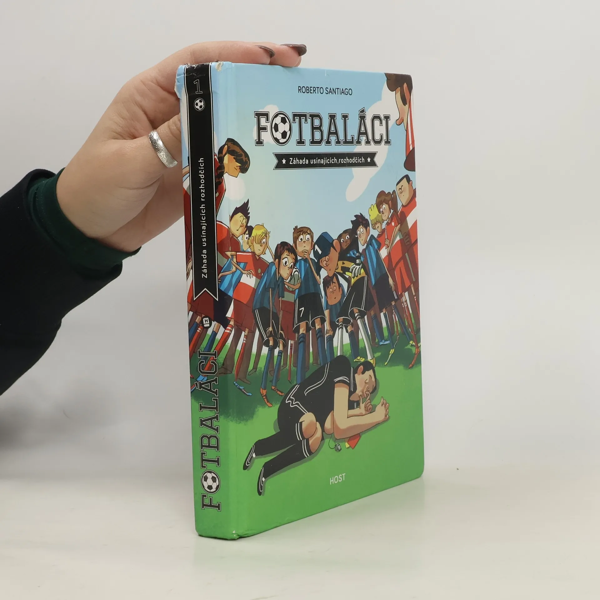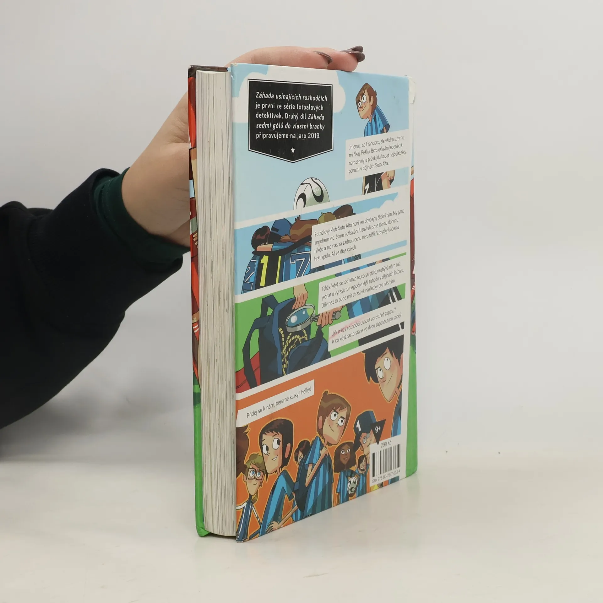 Jmenuju se Francisco, ale všichni z týmu mi říkají Pako. Nedávno mi bylo jedenáct a právě jdu kopat tu nejdůležitější penaltu v dějinách Soto Alta. Sedmý fotbalový tým Soto Alto není jen obyčejný školní oddíl. My jsme mnohem víc. My jsme Fotbaláci! Máme dohodu: nikdo a nic nás za žádnou cenu nerozdělí. Vždycky budeme hrát spolu. Ať se děje cokoli. Takže když se stalo to, co se stalo, neměli jsme jinou možnost než začít jednat: zapojit mozkové závity a přijít na kloub té nejpodivnější záhadě, jakou kdy kdo ve fotbale zažil. Jak může rozhodčí usnout uprostřed zápasu? Jak můžou usnout dva rozhodčí ve dvou zápasech? Záhada usínajících rozhodčích je první ze série fotbalových detektivek. Druhý díl Tajemství sedmi gólů do vlastní branky připravujeme na jaro 2019. Pro čtenáře od devíti let