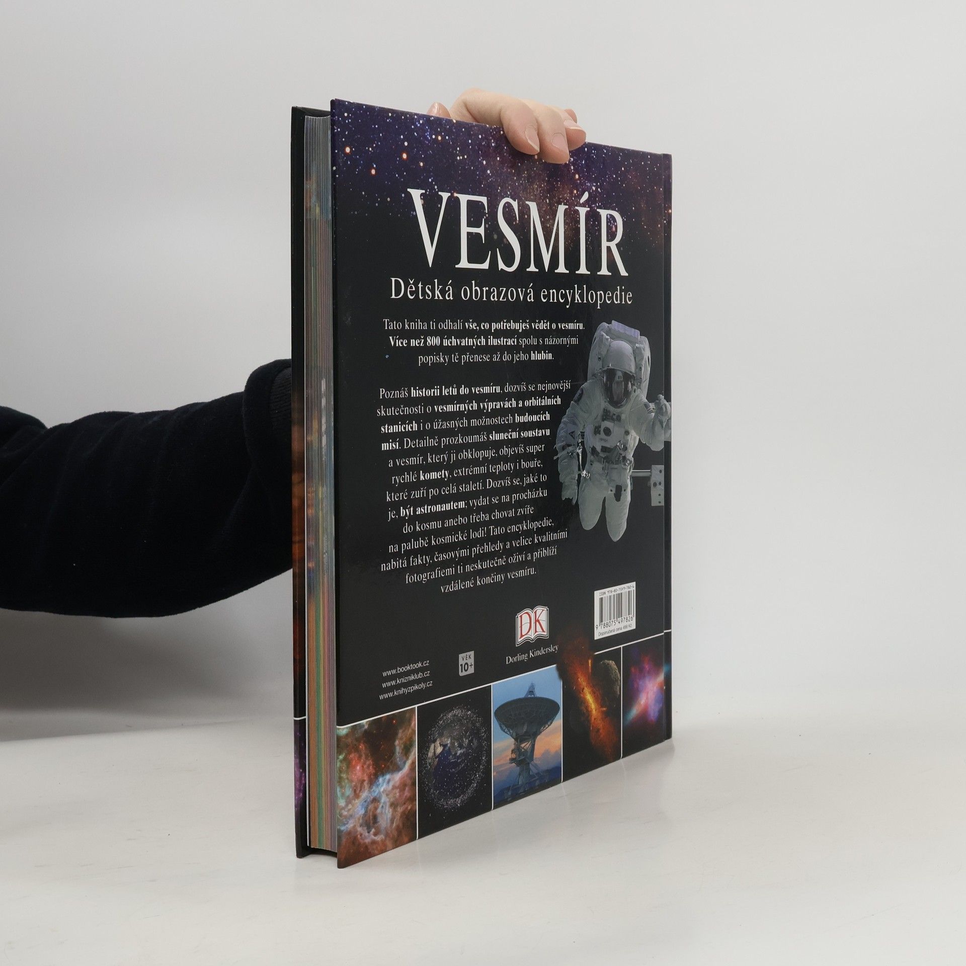 Tato dětská obrazová encyklopedie čtenářům od 10 let odhalí vše, co se touží dozvědět o vesmíru. Více než 800 úchvatných ilustrací spolu s názornými popisky je přenese do jeho hlubin. Poznají historii letů do vesmíru, dozvědí se nejnovější skutečnosti o vesmírných výpravách a orbitálních stanicích i o úžasných možnostech budoucích misí. Detailně prozkoumají sluneční soustavu a vesmír, který ji obklopuje, objeví super rychlé komety, extrémní teploty i bouře, které zuří po celá staletí. Dozvědí se, jaké to je, být astronautem, vydat se na procházku do kosmu anebo třeba chovat zvíře na palubě kosmické lodi!