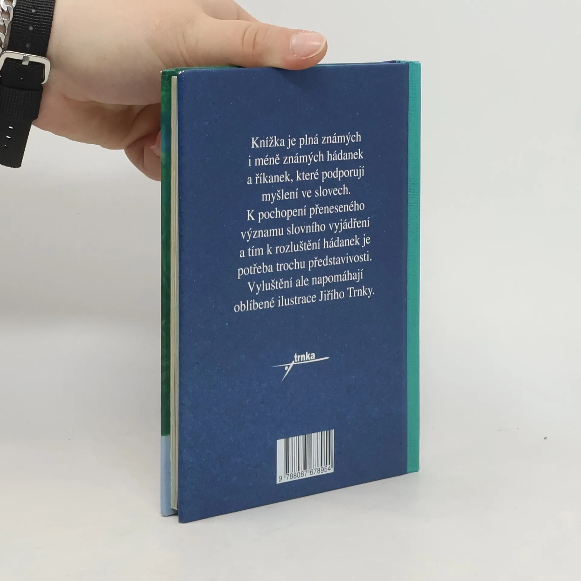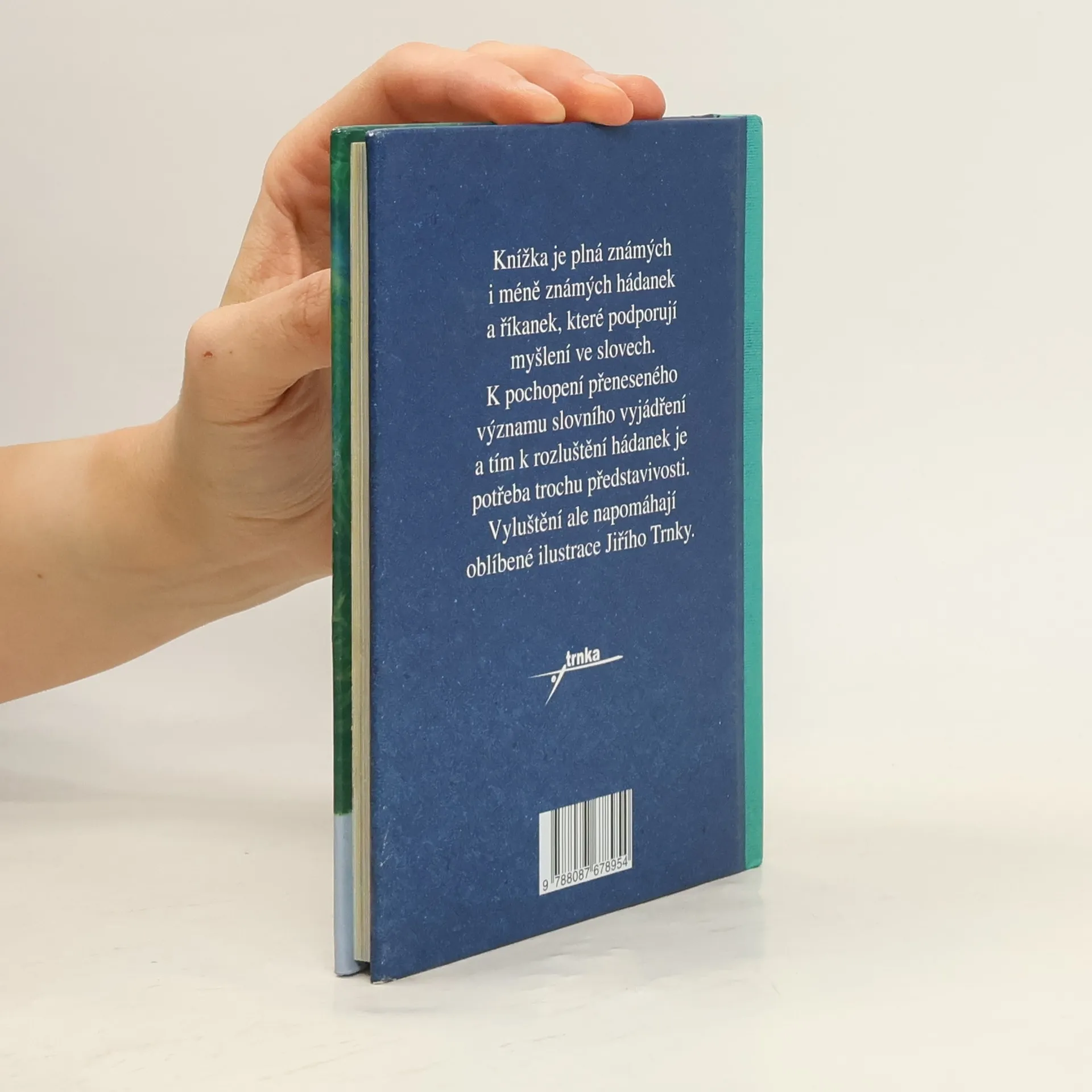 Knížka je plná známých i méně známých hádanek a říkanek, které podporují myšlení ve slovech. K pochopení přeneseného významu a k rozluštění je potřeba představivosti, k níž napomohou ilustrace Jiřího Trnky.
