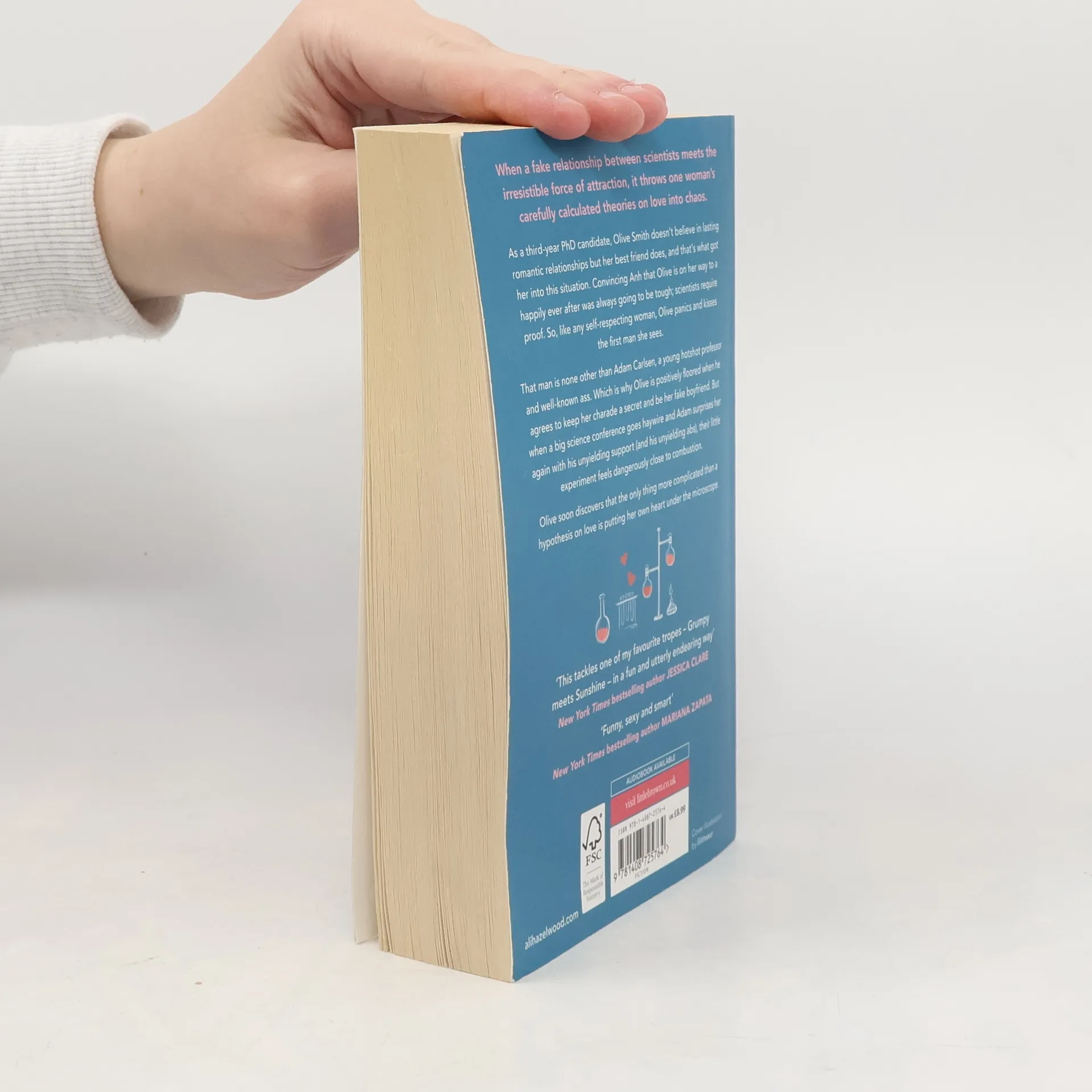 When a fake relationship between scientists meets the irresistible force of attraction, it throws one woman's carefully calculated theories on love into chaos. As a third-year Ph.D. candidate, Olive Smith doesn't believe in lasting romantic relationships but her best friend does, and that's what got her into this situation. Convincing Anh that Olive is on her way to a happily ever after was always going to be tough, scientists require proof. So, like any self-respecting woman, Olive panics and kisses the first man she sees. That man is none other than Adam Carlsen, a young hotshot professor and well-known ass. Which is why Olive is positively floored when he agrees to keep her charade a secret and be her fake boyfriend. But when a big science conference goes haywire and Adam surprises her again with his unyielding support (and his unyielding abs), their little experiment feels dangerously close to combustion. Olive soon discovers that the only thing more complicated than a hypothesis on love is putting her own heart under the microscope.